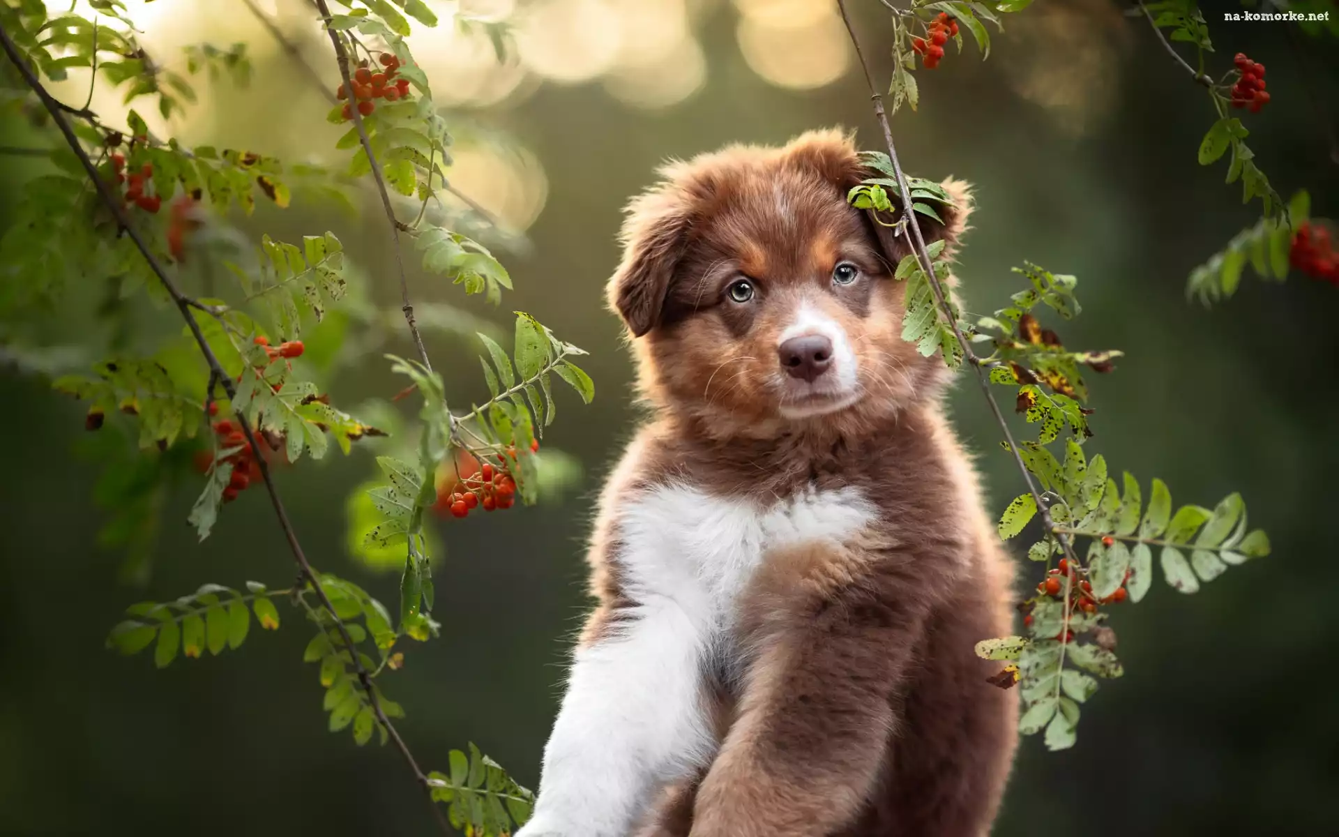 Jarzębina, Pies, Gałązki, Listki, Owczarek australijski, Szczeniak na Komórkę