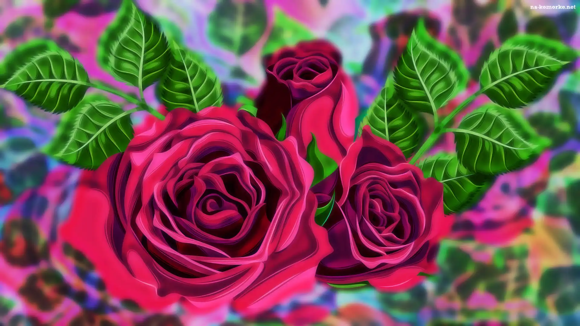 Kwiaty, Listki, Grafika, Róże, 2D na Komórkę