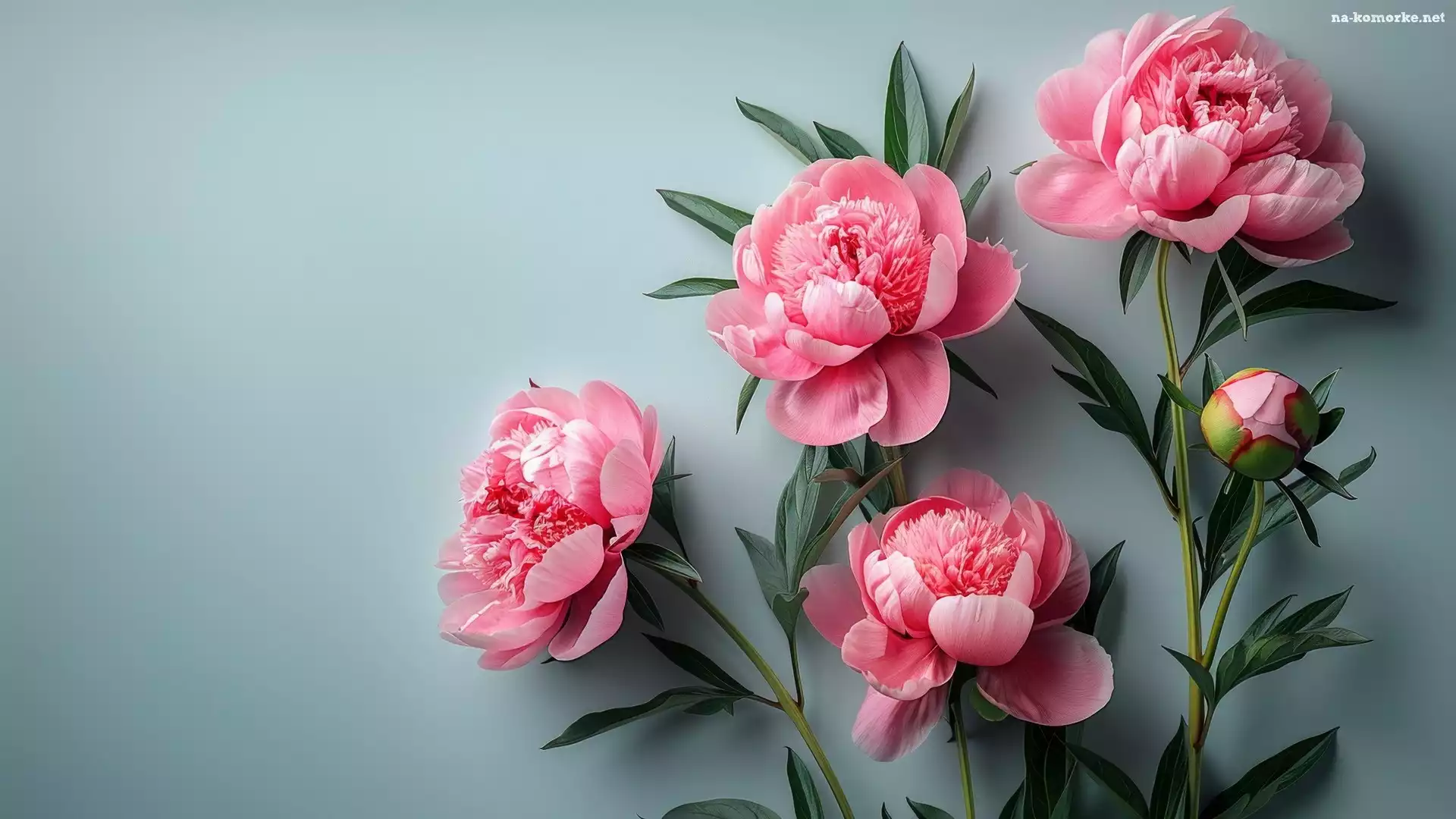 Zielone, Cztery, Pąk, Listki, Piwonie, Różowe na Komórkę