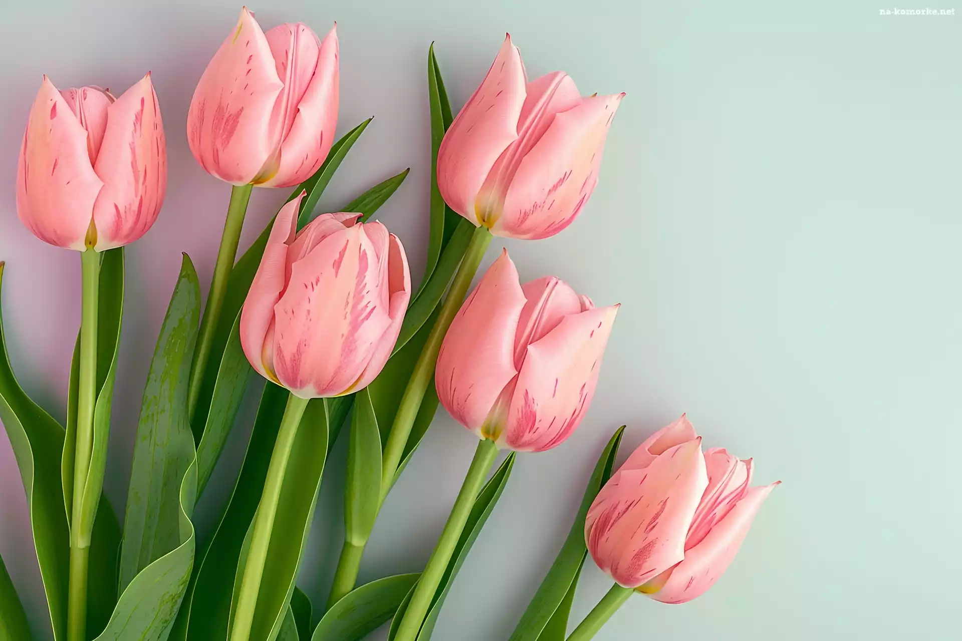 Różowe, Listki, Seledynowe, Tulipany, Tło na Komórkę