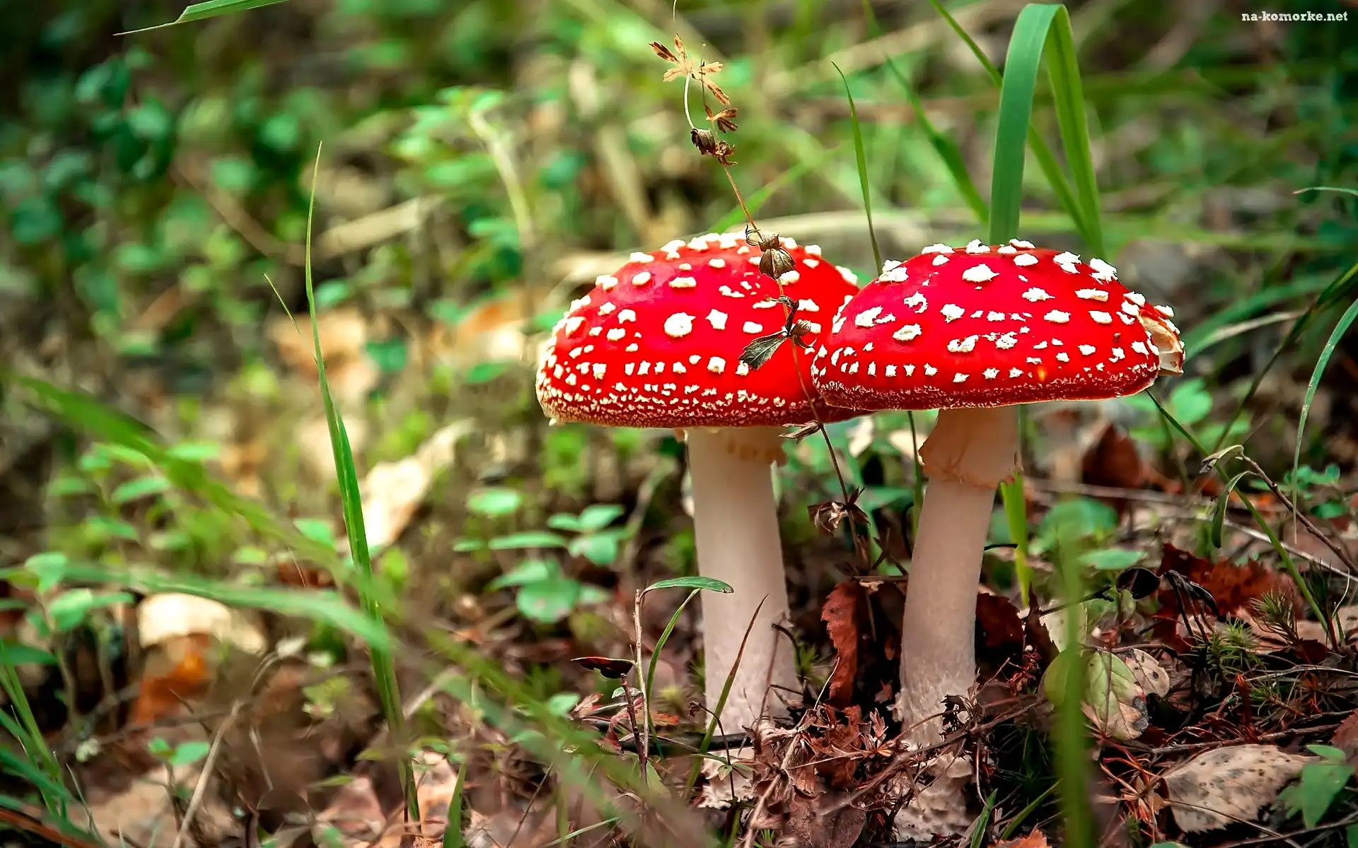 Listki, Dwa, Muchomory, Trawa, Igły na Komórkę