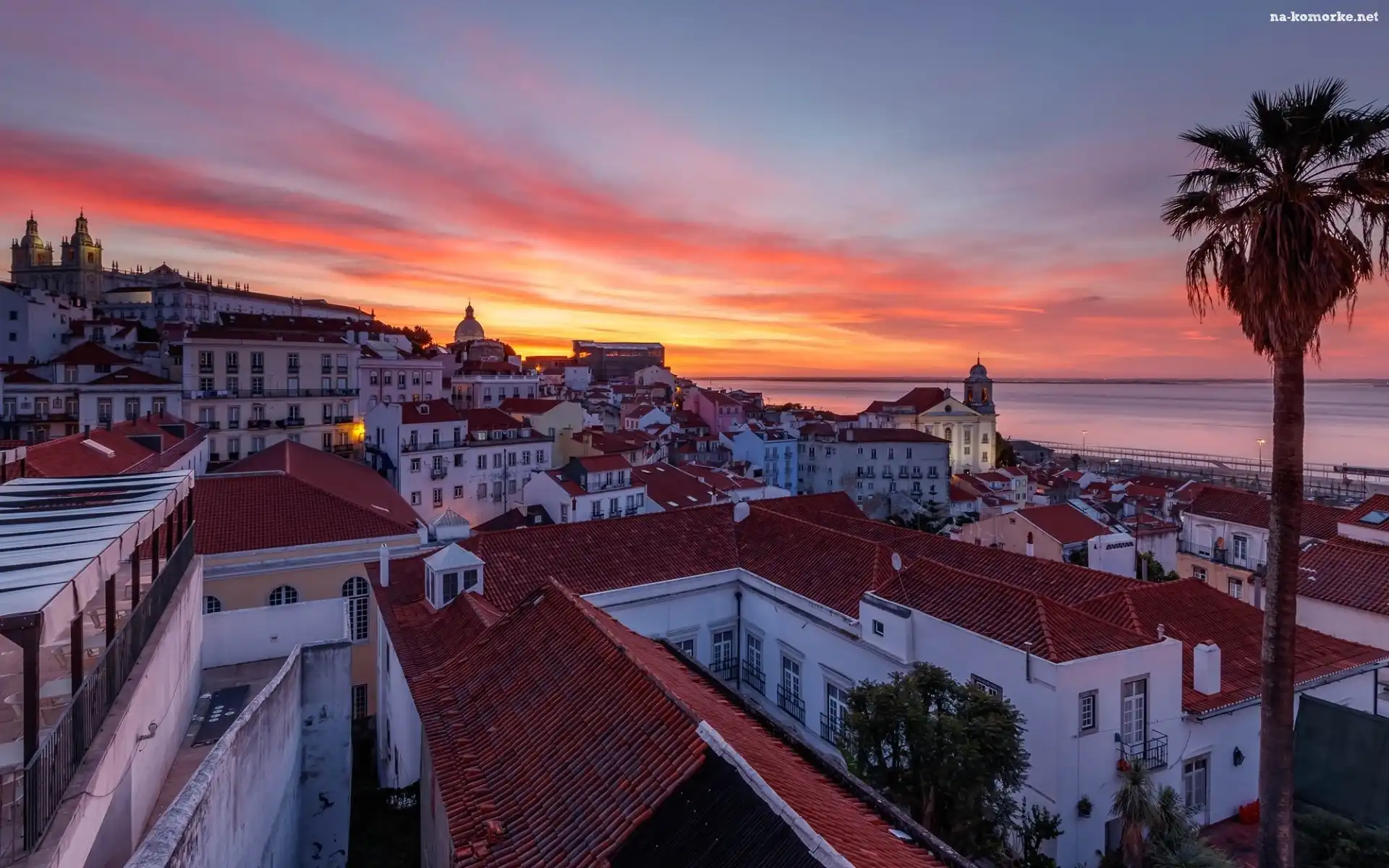 Palma, Portugalia, Domy, Zachód słońca, Dzielnica Alfama, Lizbona na Komórkę