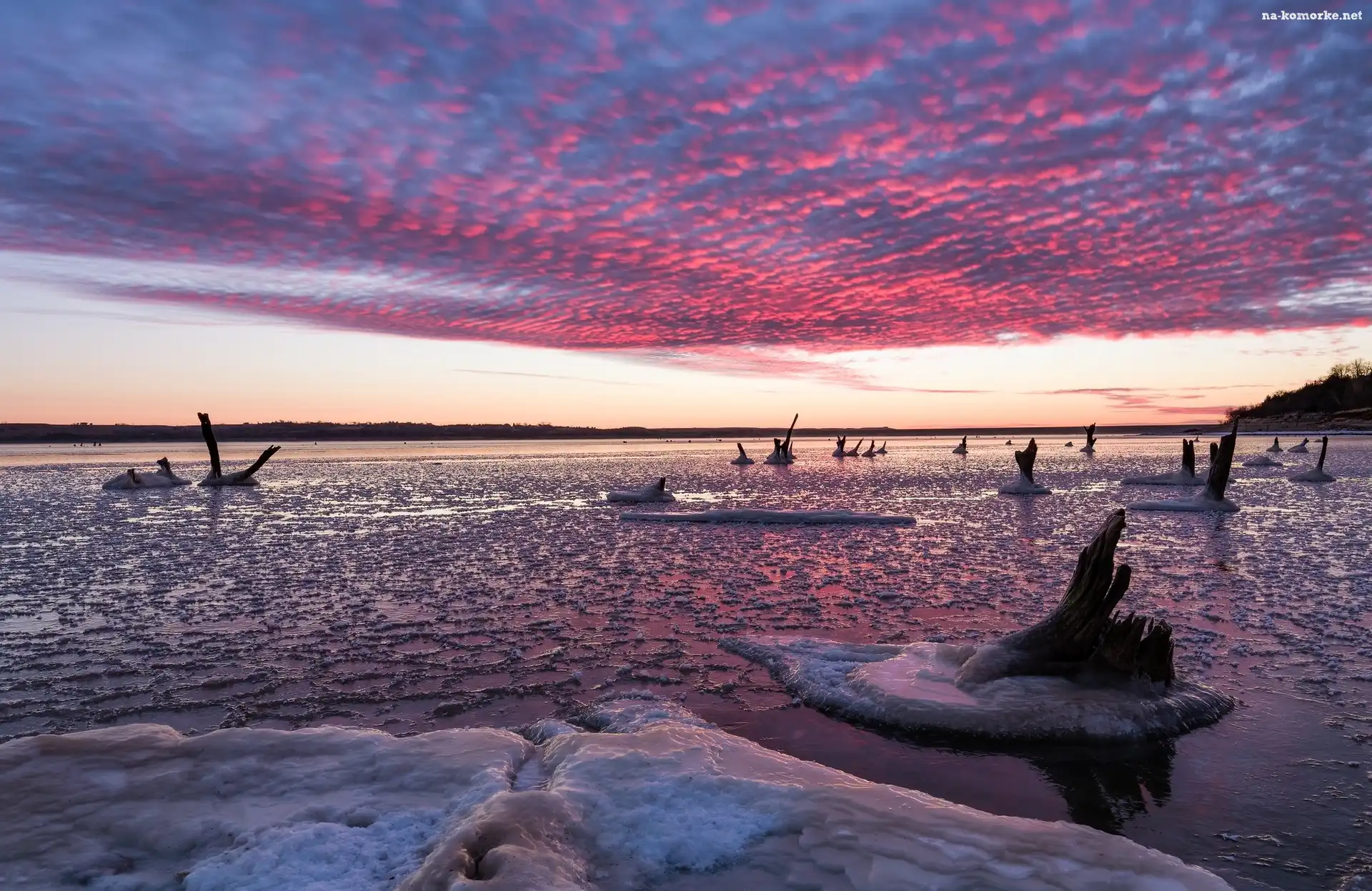 Jezioro, Stan Kansas, Stany Zjednoczone, Chmury, Tuttle Creek Lake, Lód na Komórkę