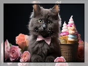 Kwiaty, Puszysty, Muszka, Lody, Różowa, Kot na Komórkę