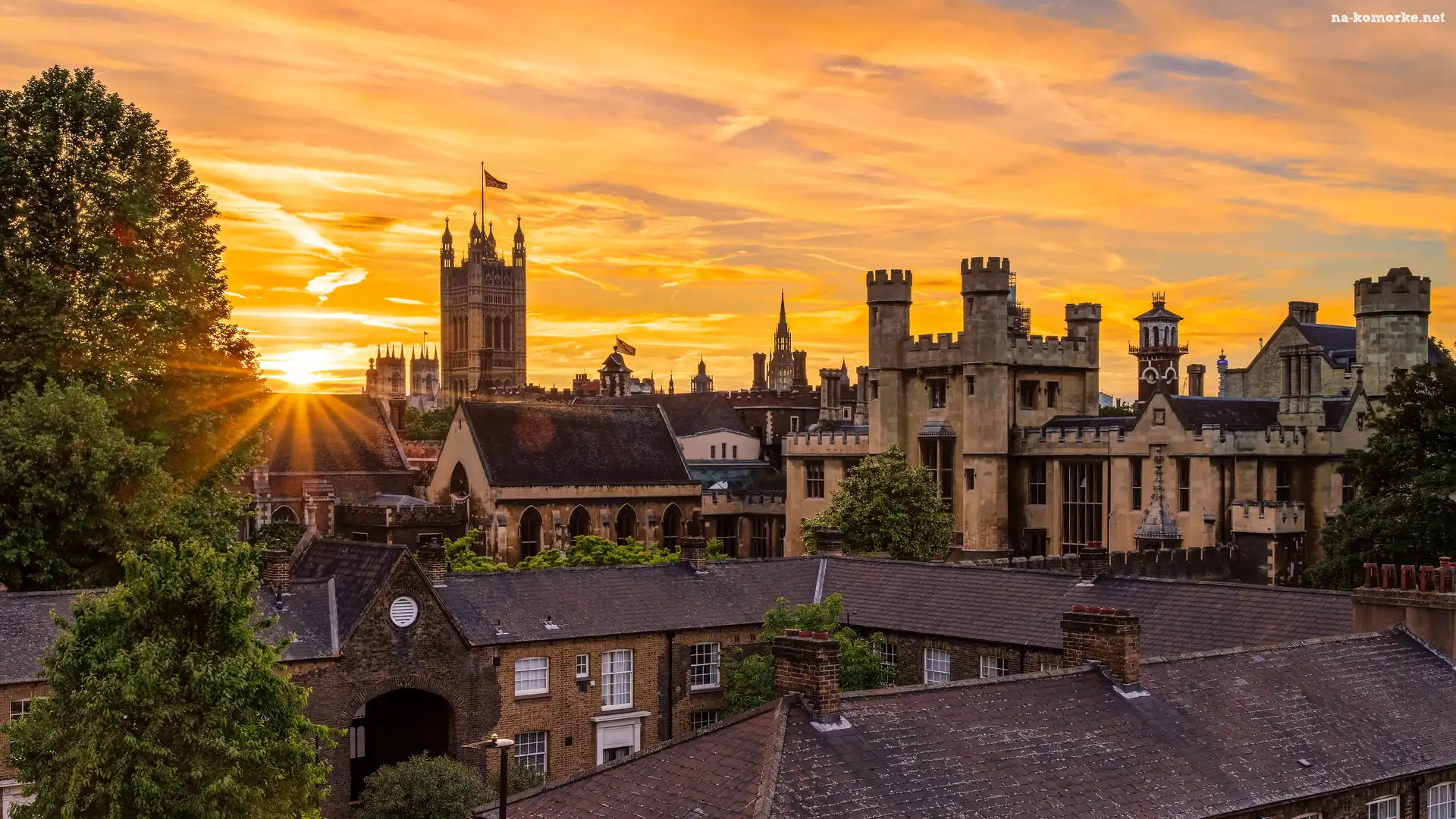 Pałac Lambeth, Londyn, Pałacu Westminster, Anglia, Wieża, Flaga, Zachód słońca, Drzewa na Komórkę