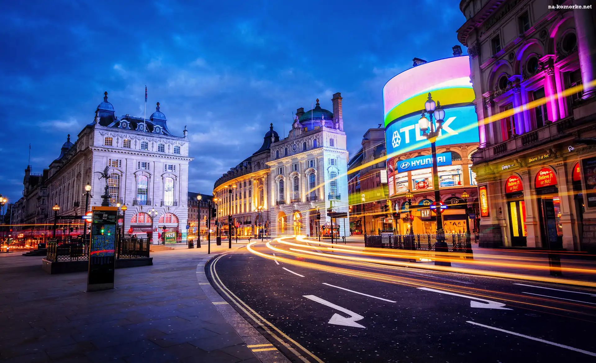 Ulica, Londyn, Anglia, Domy, Plac Piccadilly Circus, Światła na Komórkę