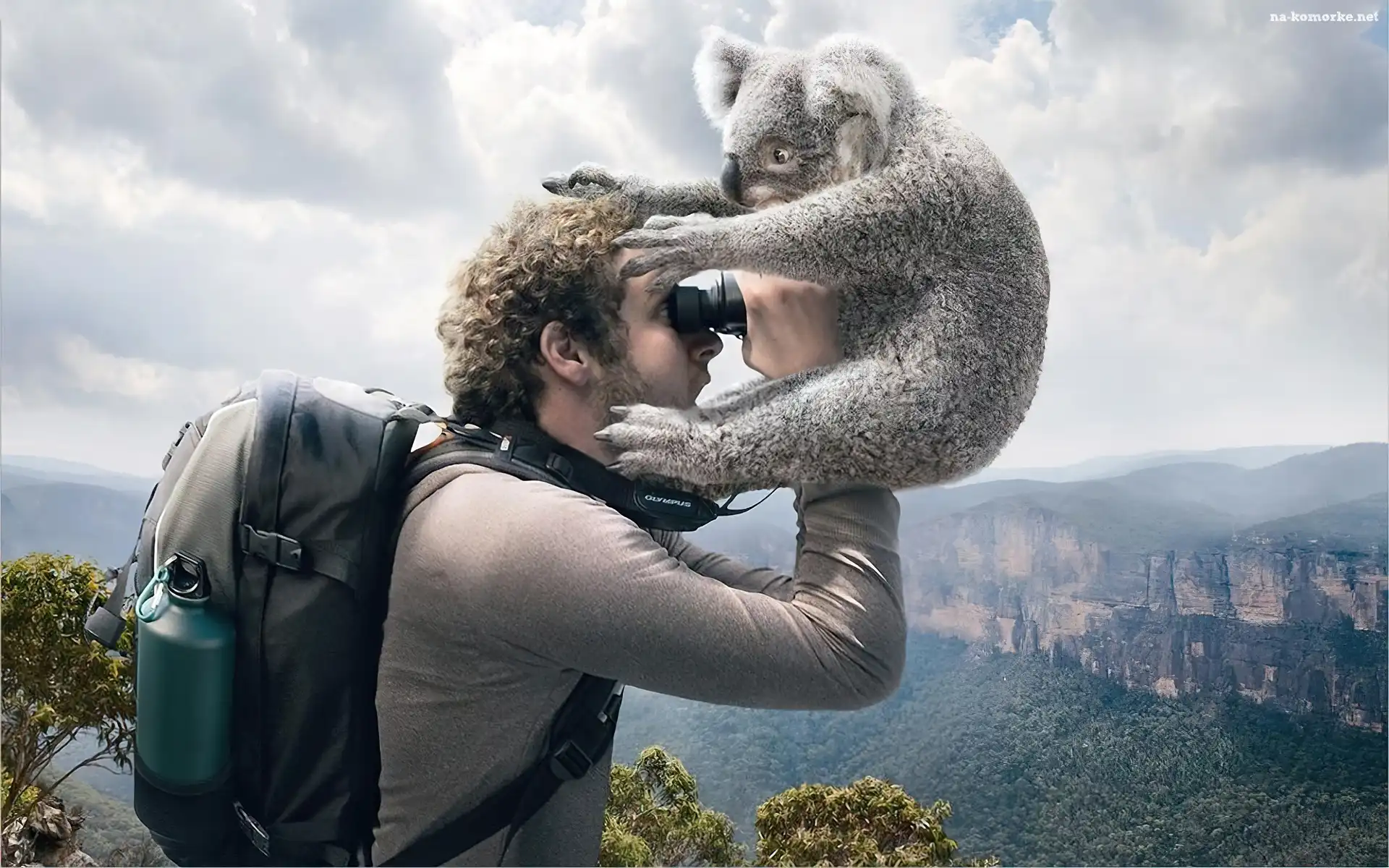 Mężczyzna, Lornetka, Koala na Komórkę