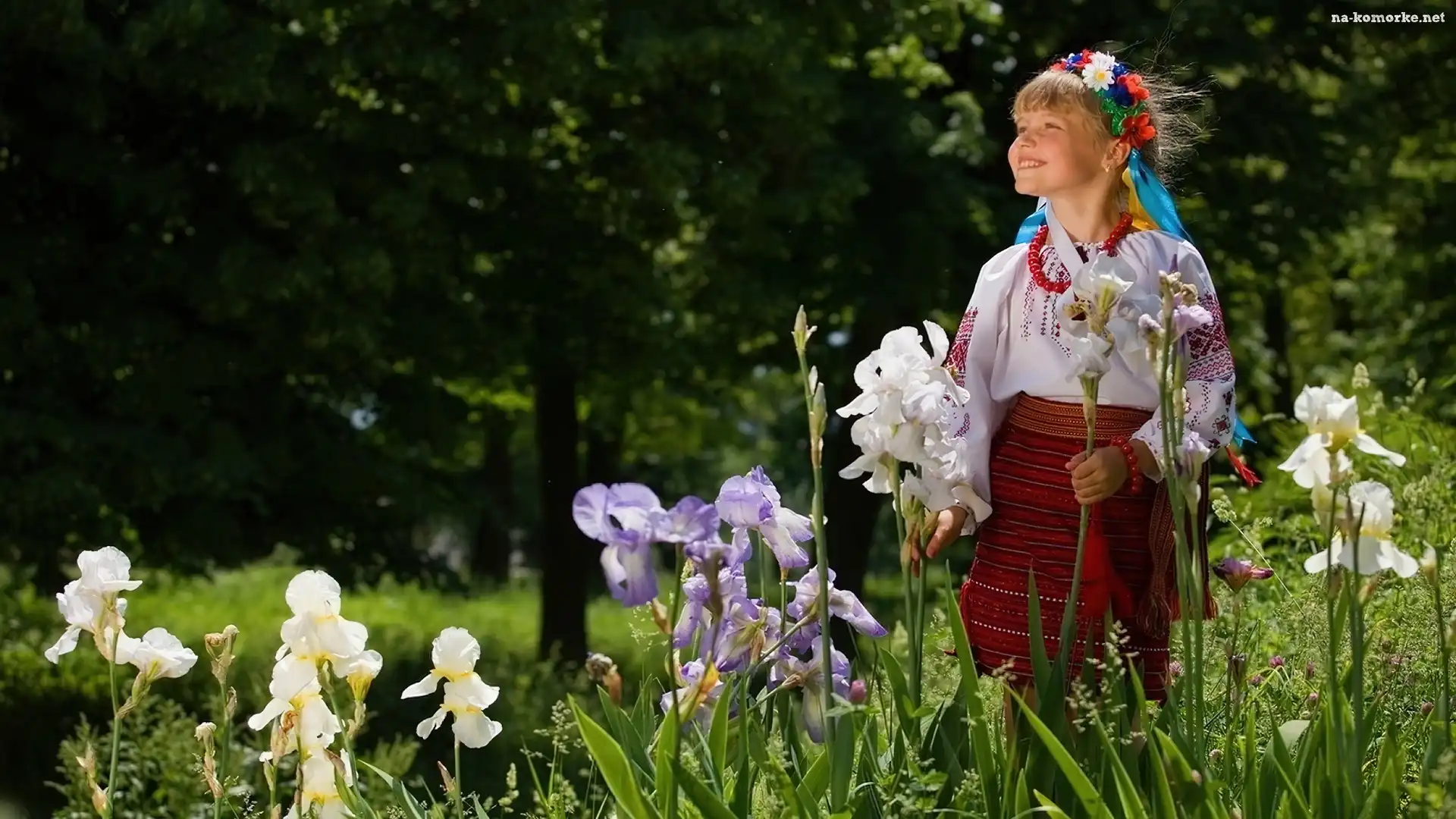 Ludowy, Wianek, Dziewczynka, Drzewa, Strój, Irysy na Komórkę