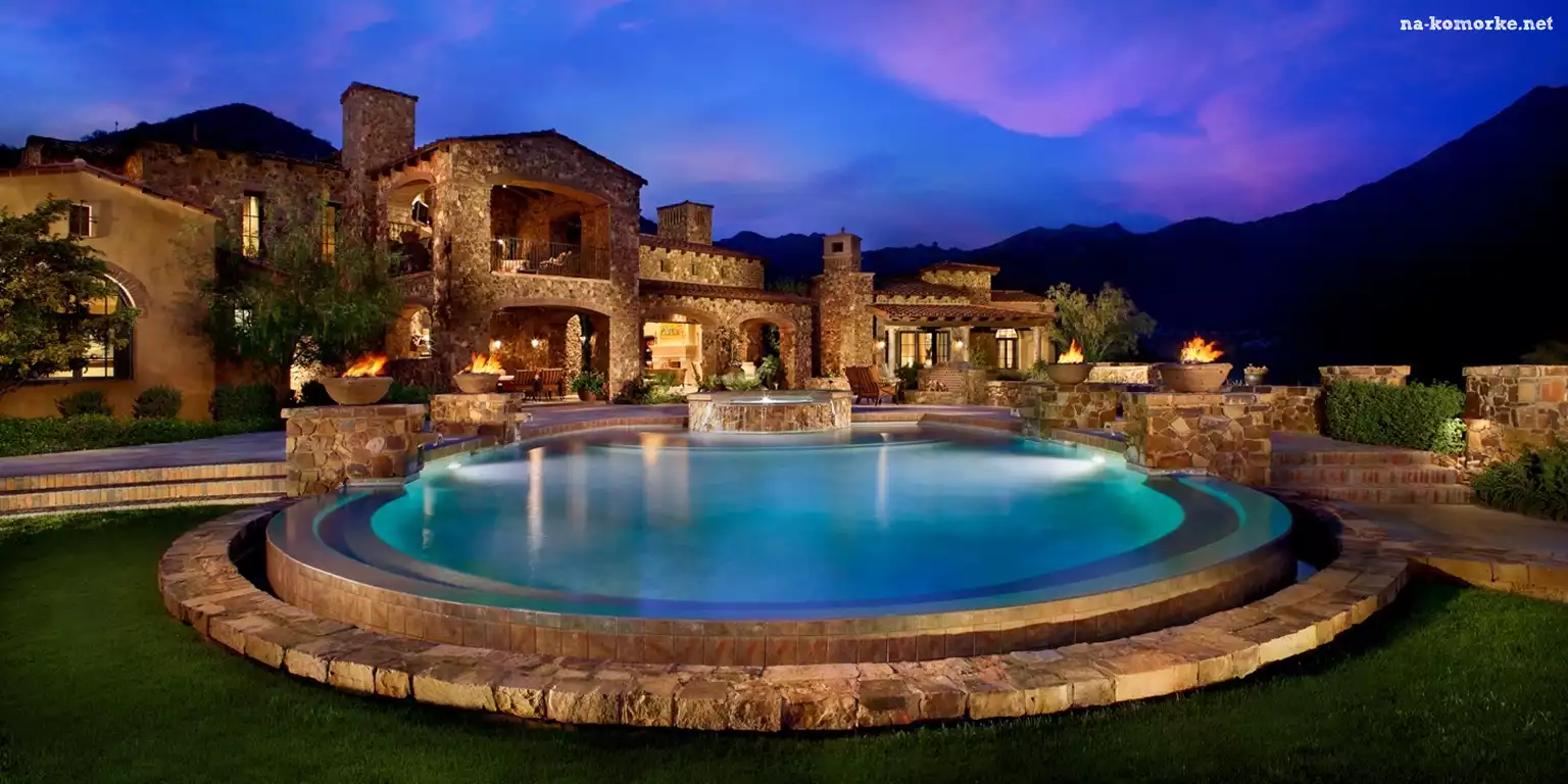 Luksusowy, Wieczór, Dom, Basen na Komórkę