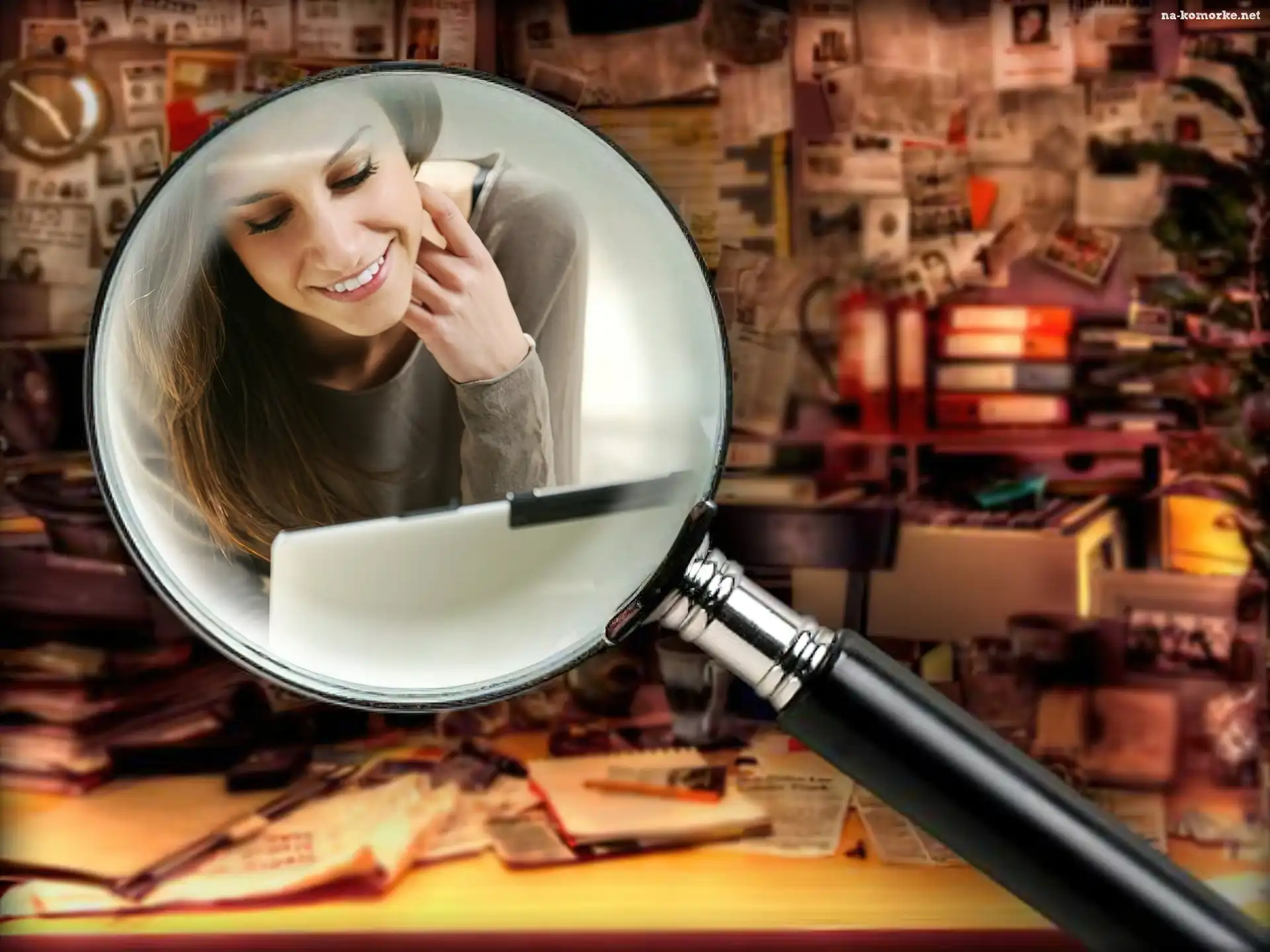 Lupa, Grafika, Kobieta, Laptop na Komórkę