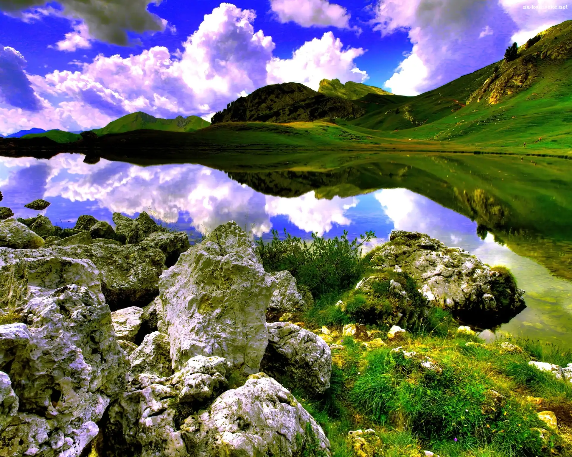 Lustrzane, Góry, Jezioro, Kamienie, Odbicie na Komórkę