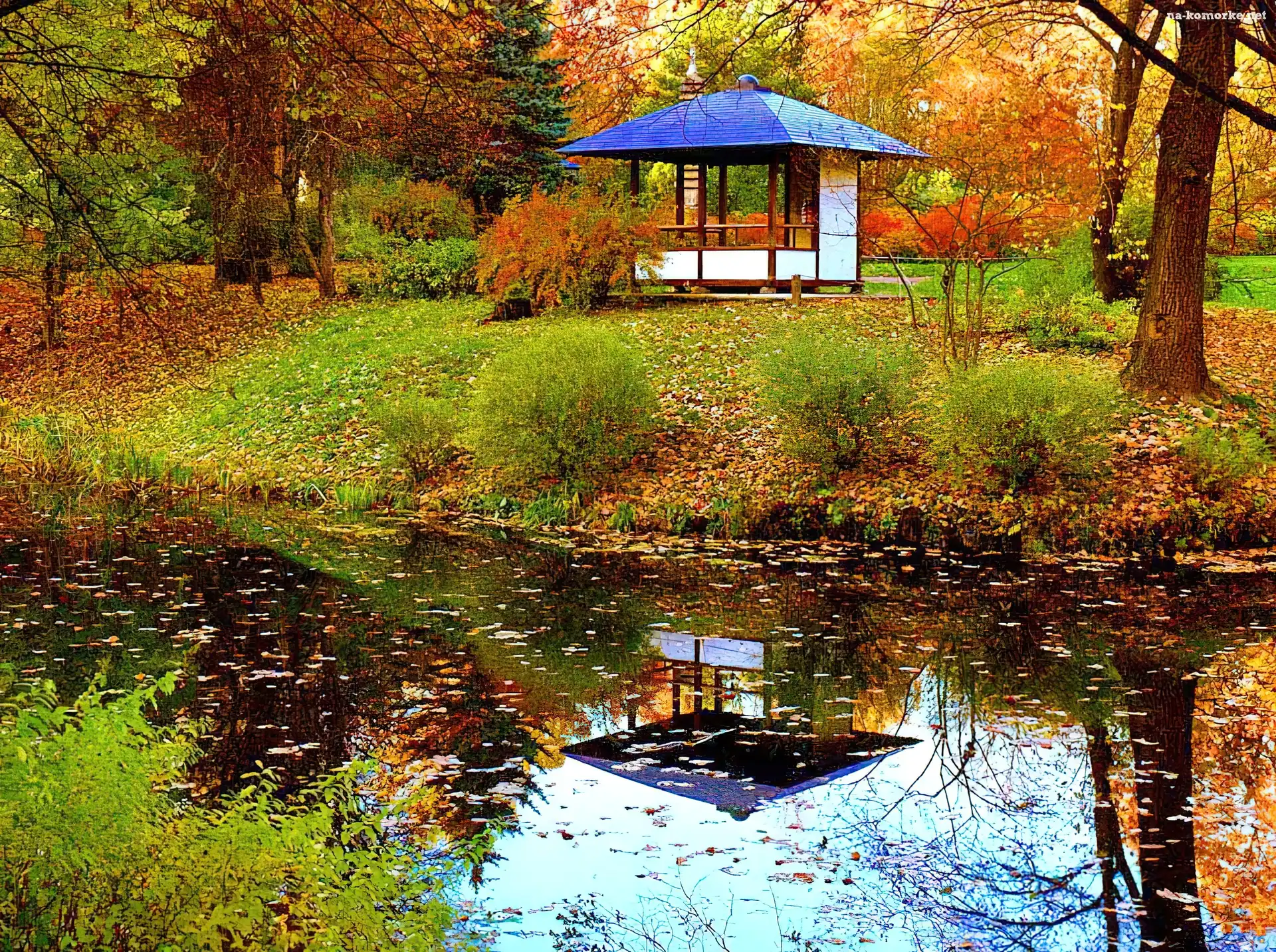 Lustrzane, Jesień, Park, Rzeka, Odbicie na Komórkę