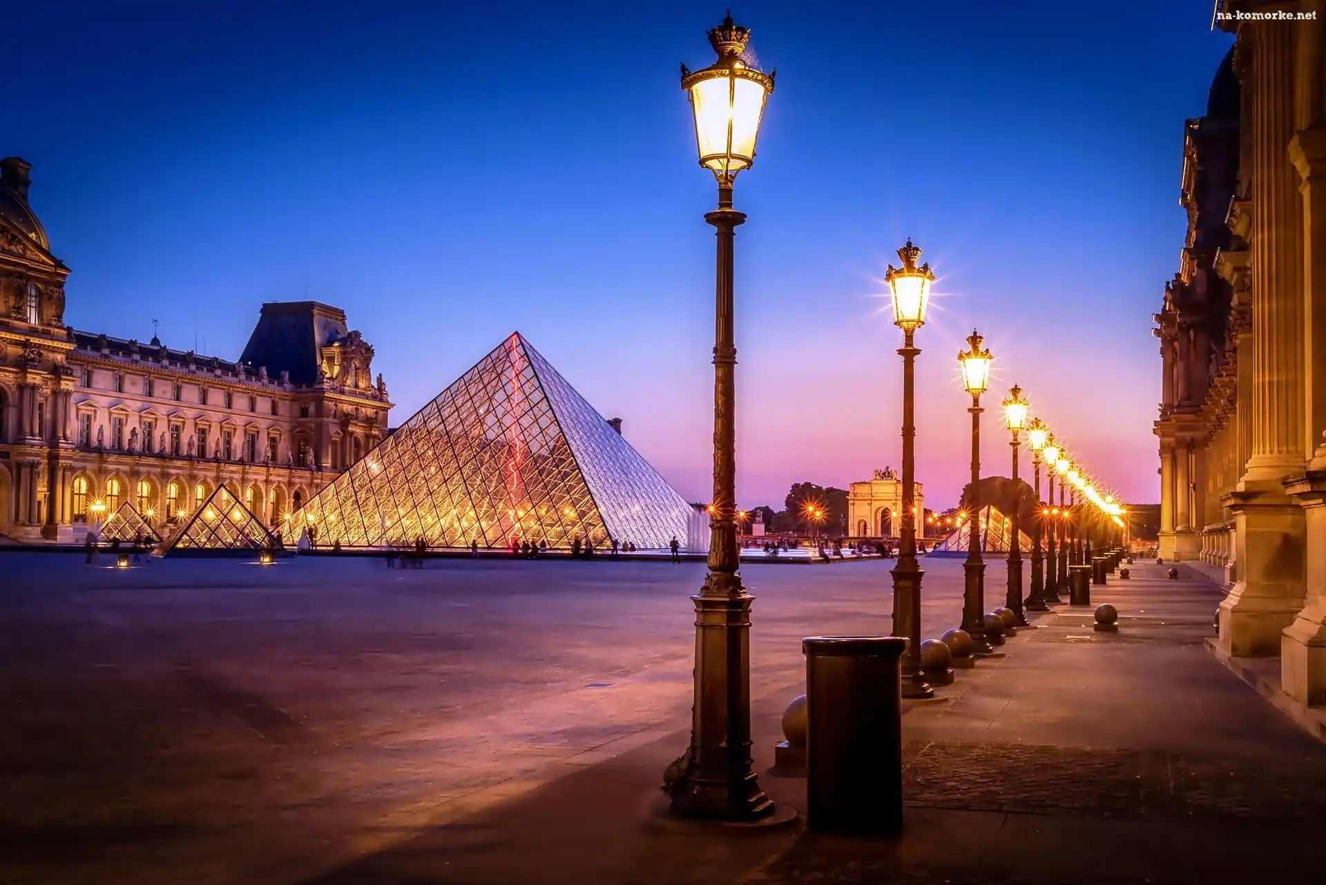 Pałac, Paryż, Francja, Latarnie, Muzeum Luwr, Piramida na Komórkę