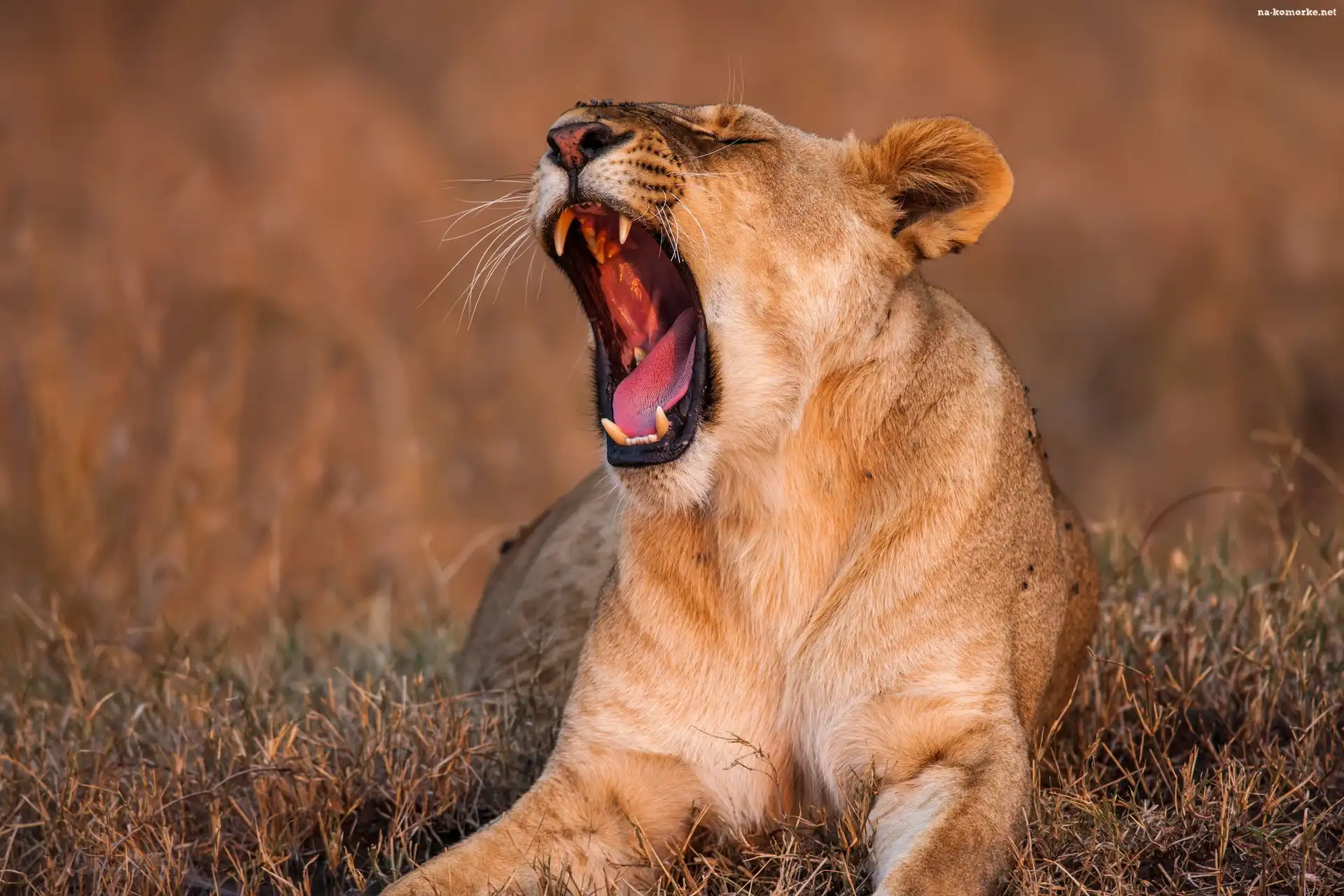 Ziewająca, Lwica, Trawa na Komórkę