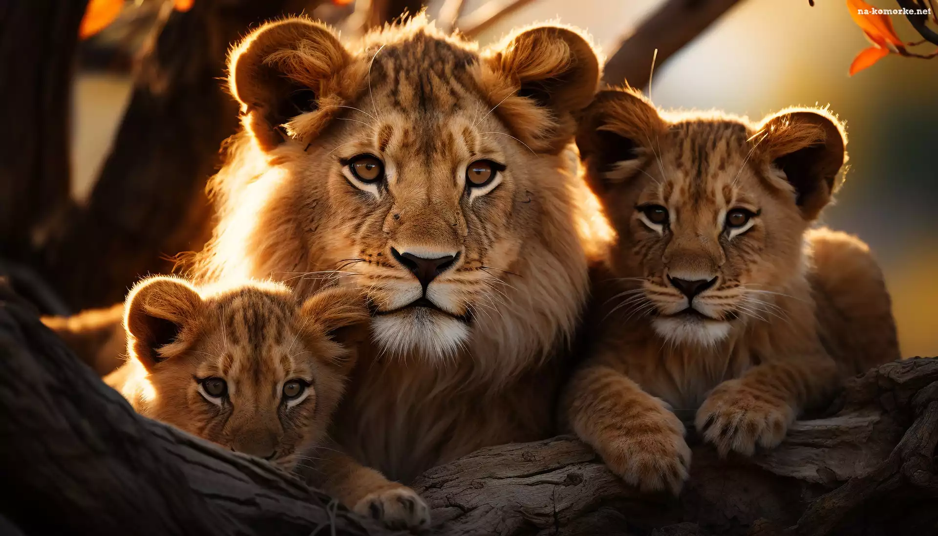 Młode, Grafika, Trzy, Lwy na Komórkę