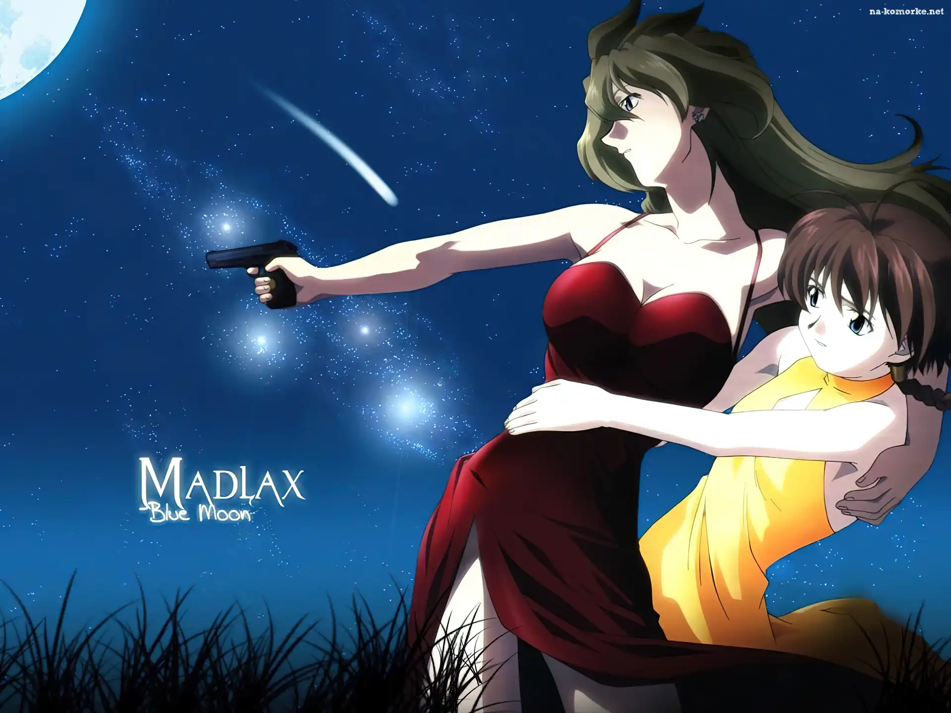 Madlax, księżyc, kobieta, pistolet na Komórkę
