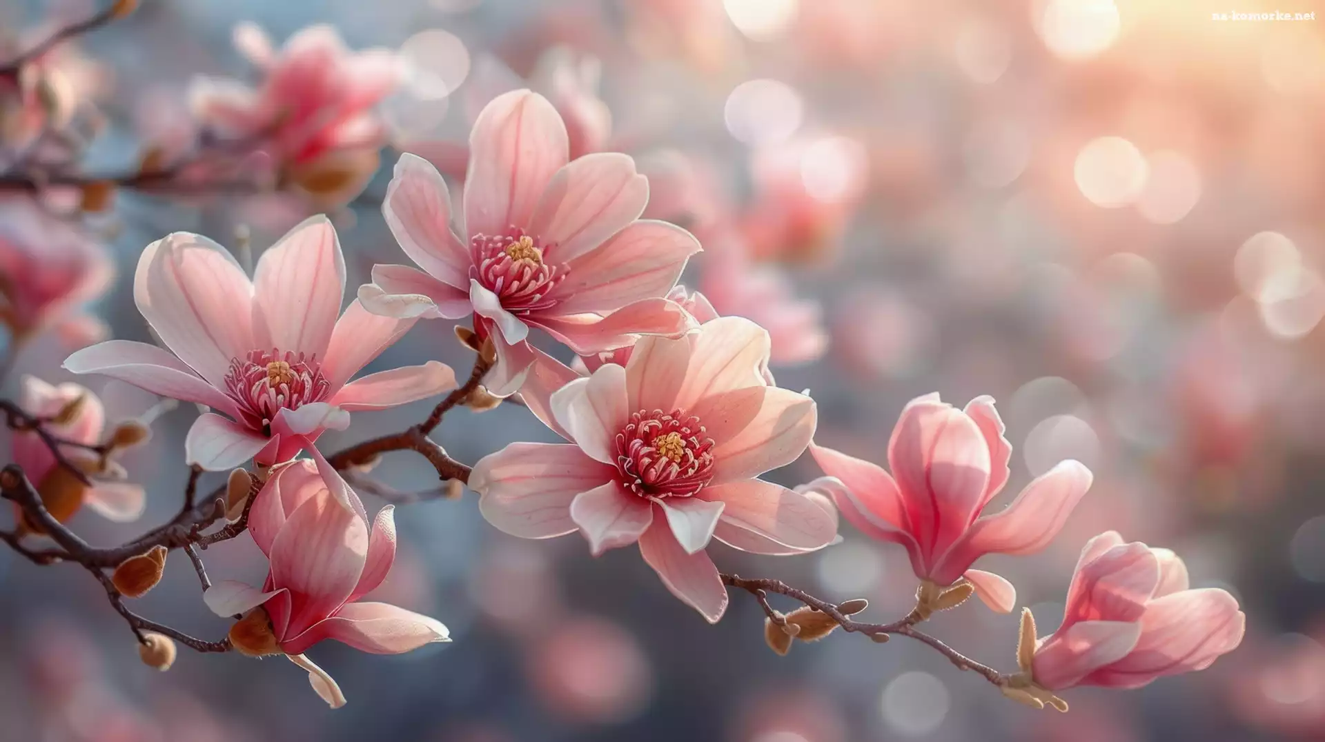 Kwitnące, Magnolia, Różowe, Gałązki, Kwiaty na Komórkę