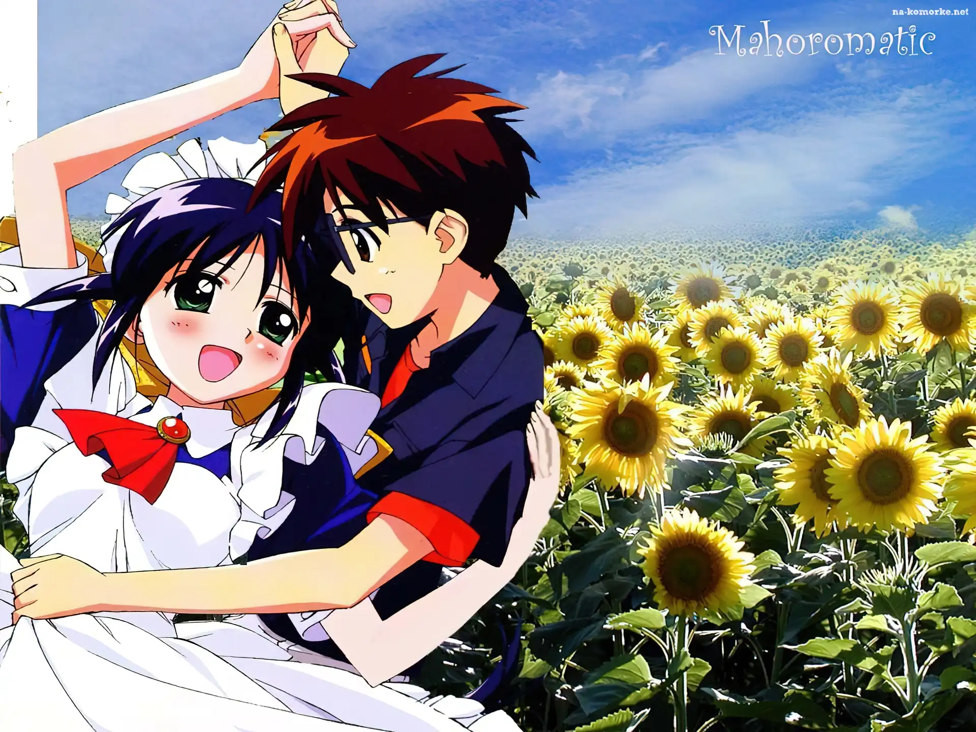 Mahoromatic, oczy, słoneczniki, para na Komórkę