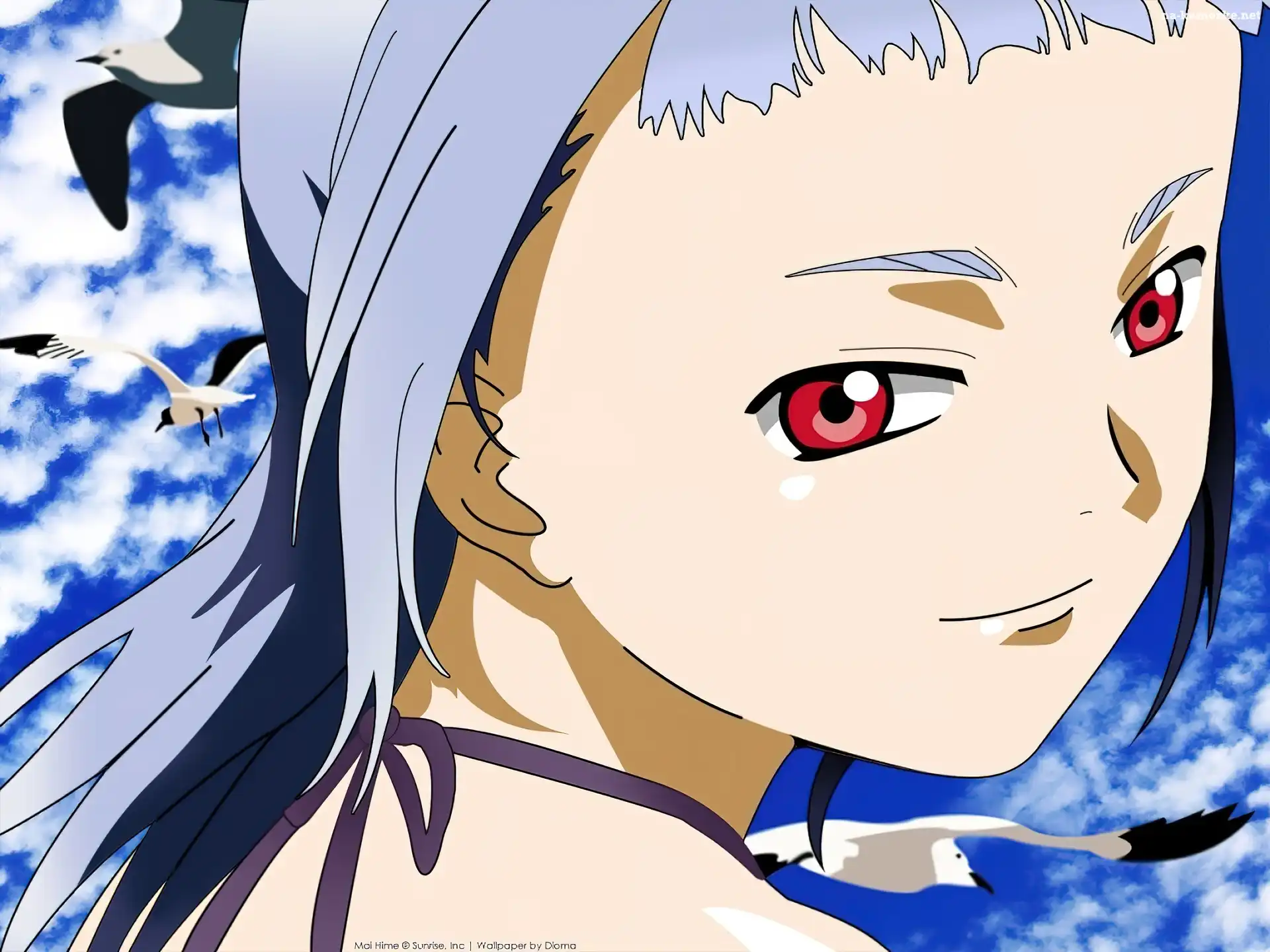 Mai Hime, ptaki, kobieta, oczy na Komórkę