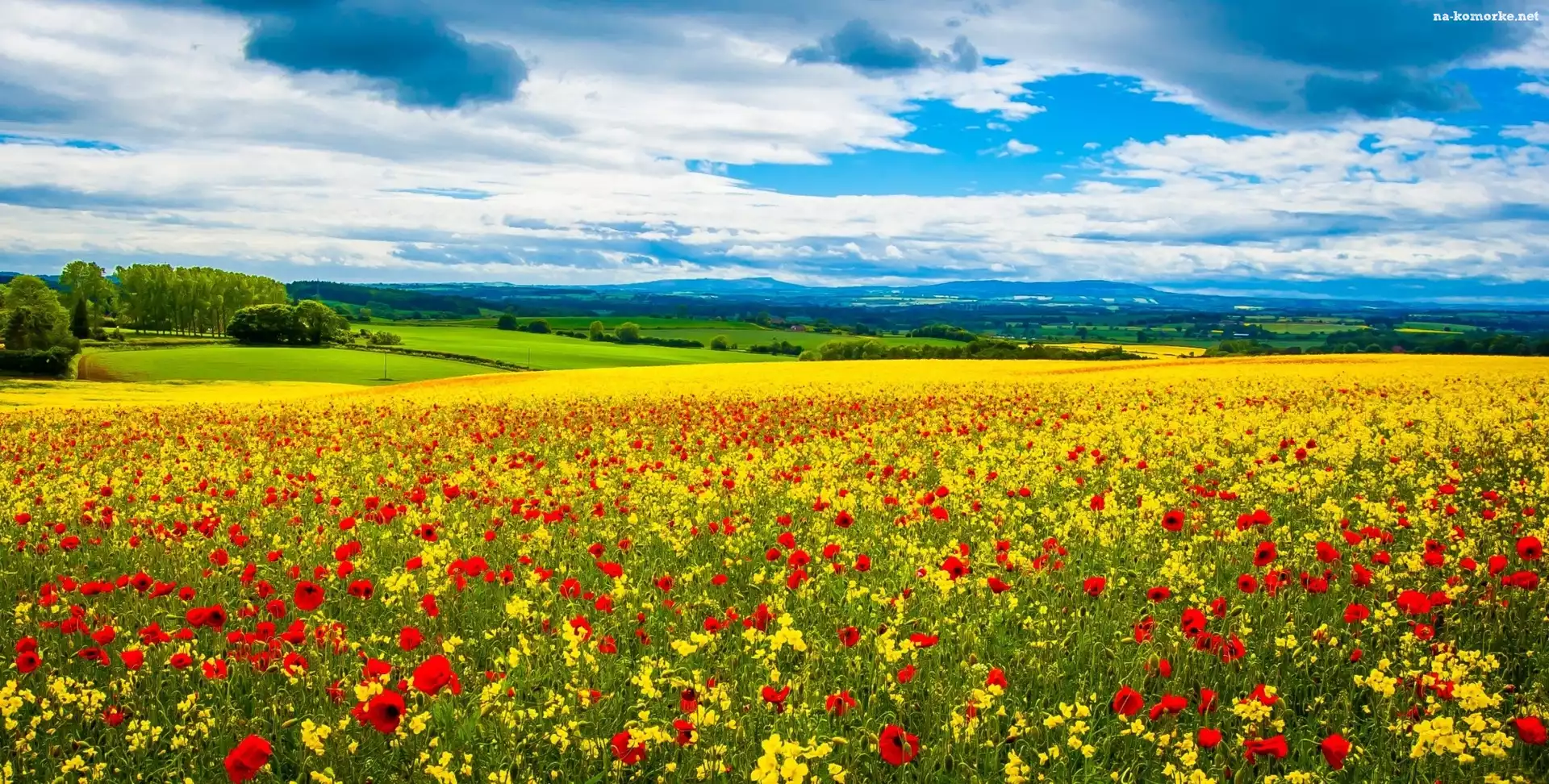 Łąka, Maki, Krajobraz na Komórkę