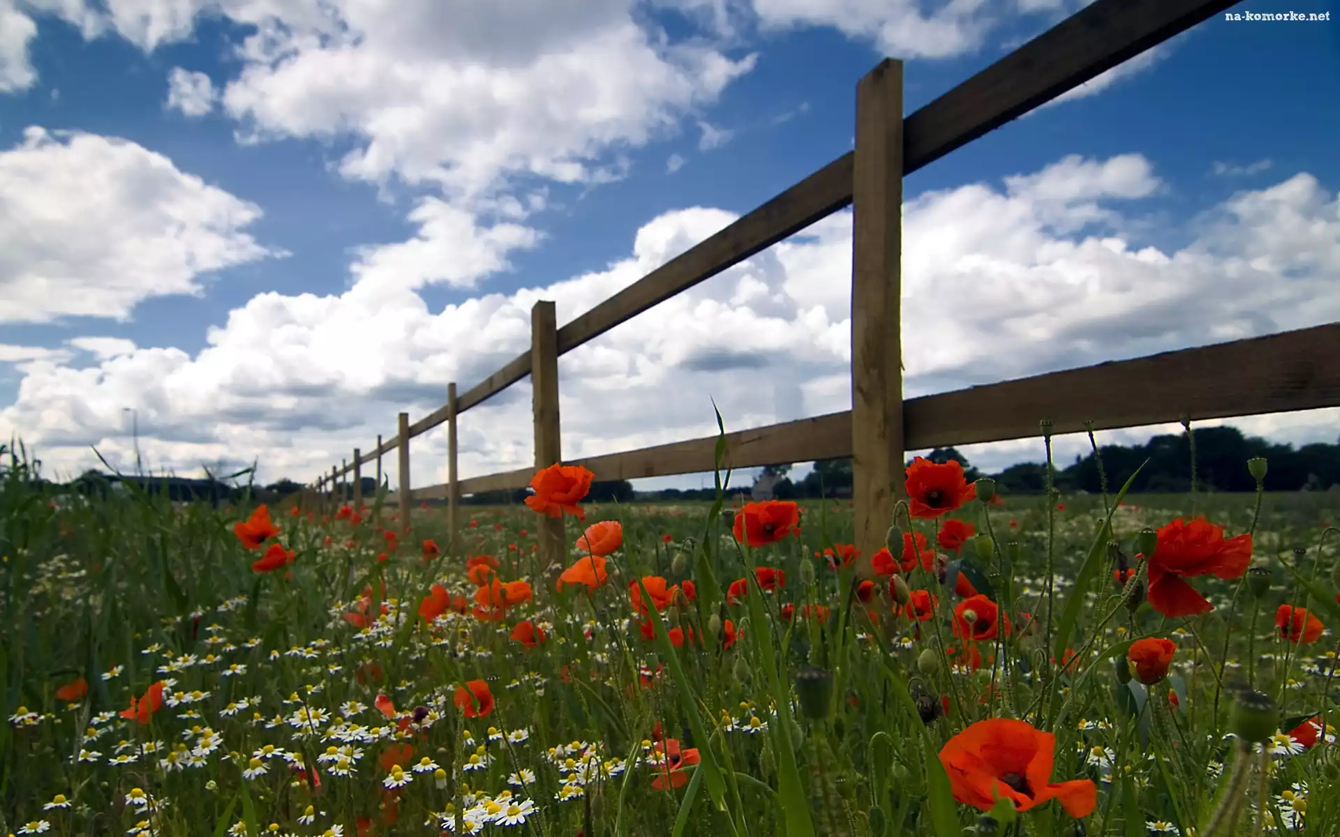 Łąka, Chmury, Maki, Płotek na Komórkę