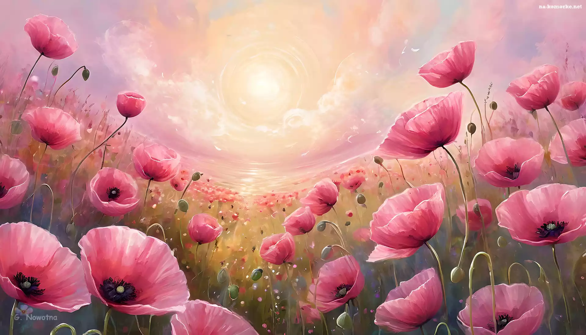 Słońce, Maki, Kwiaty, Różowe, Grafika na Komórkę