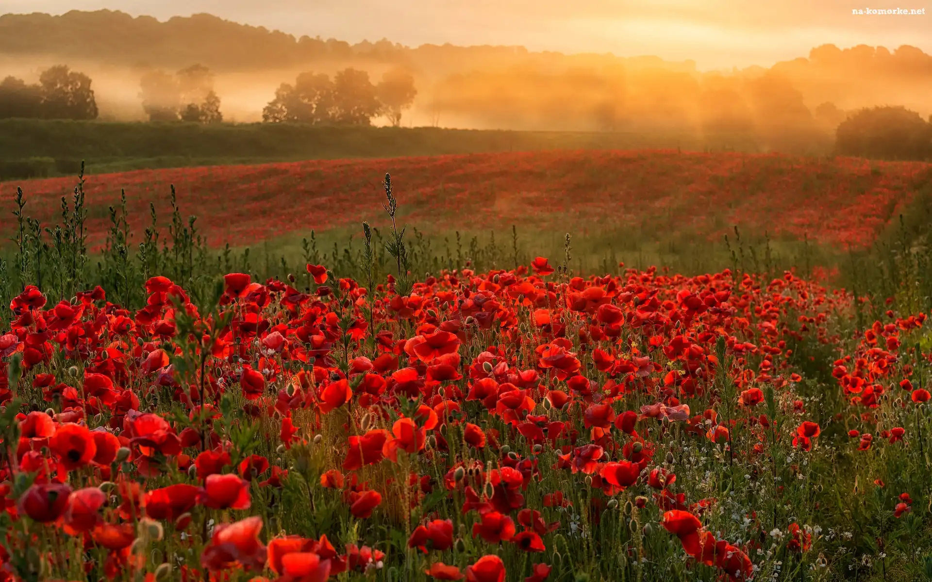 Łąka, Mgła, Maki, Drzewa na Komórkę