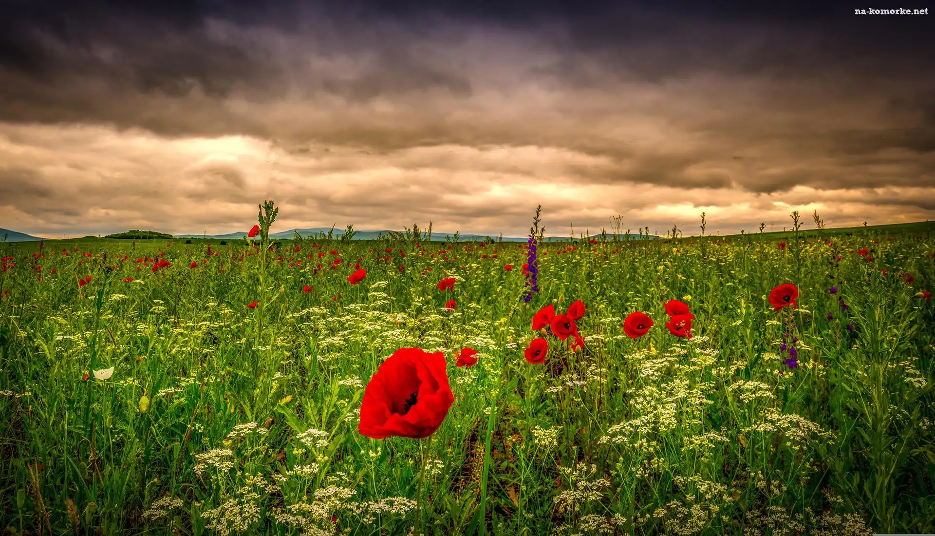 Łąka, Słońca, Maki, Zachód na Komórkę