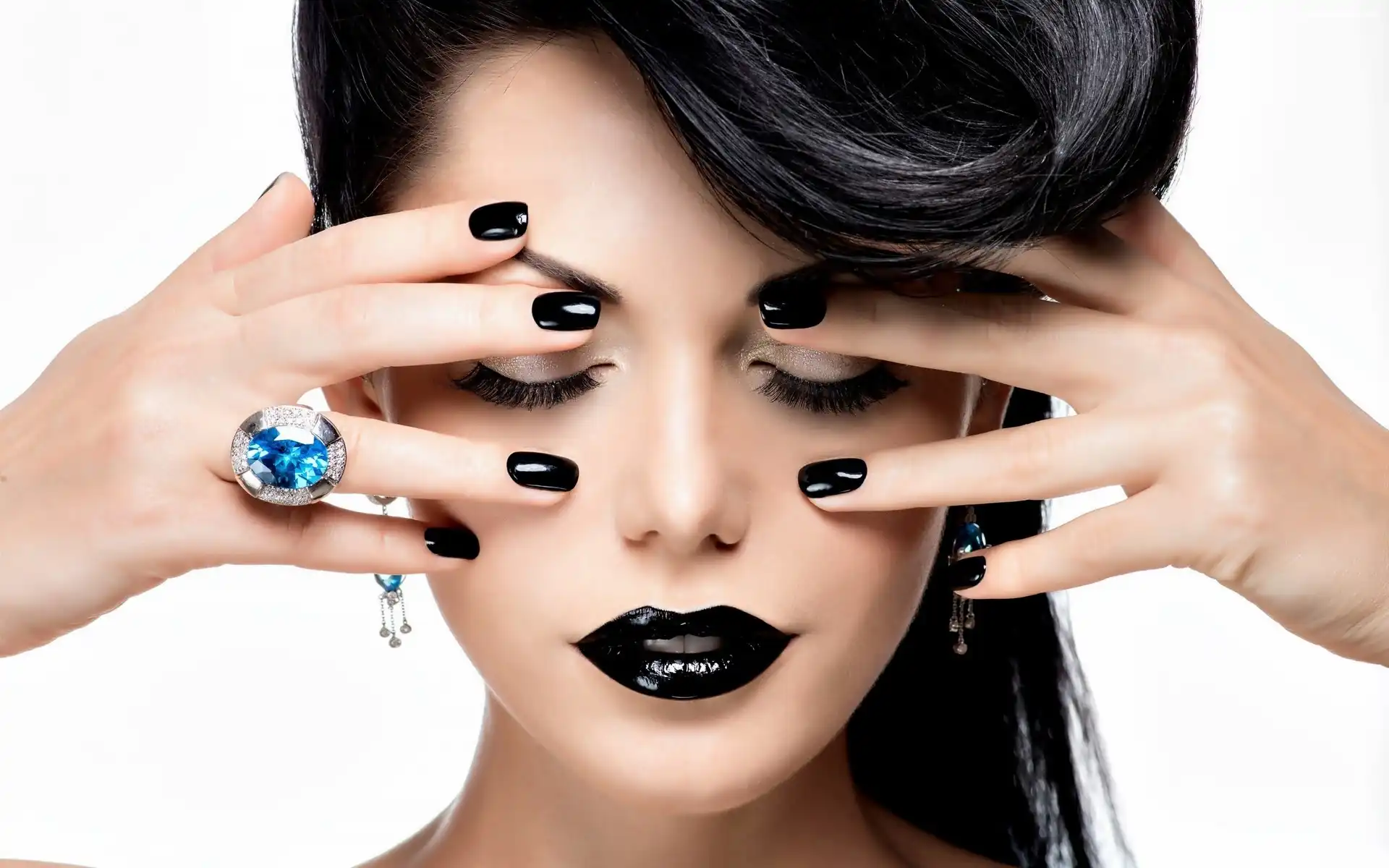 Kobieta, Makijaż, Biżuteria, Modelka, Twarz, Dłonie, Czarny na Komórkę