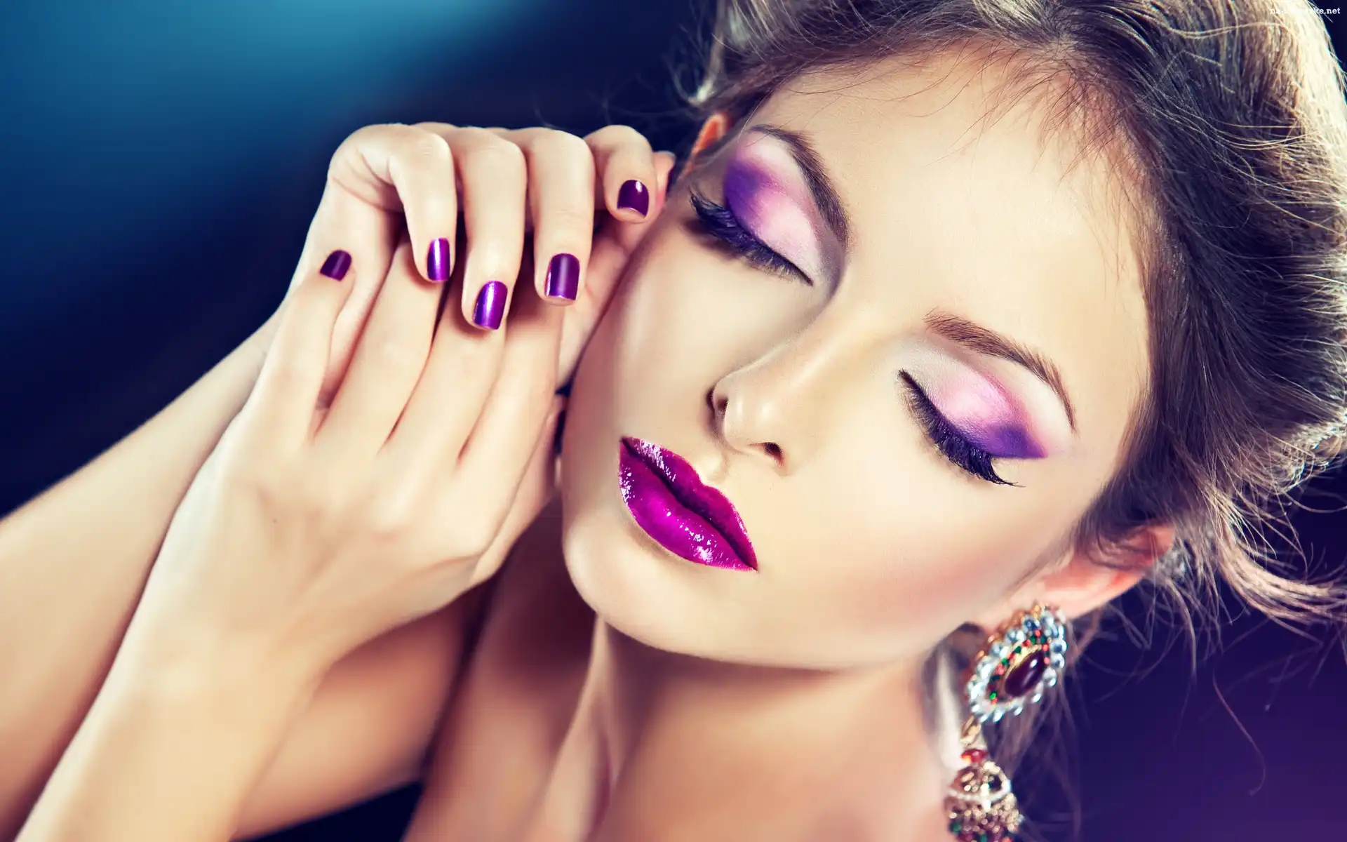 Kobieta, Makijaż, Dłonie na Komórkę