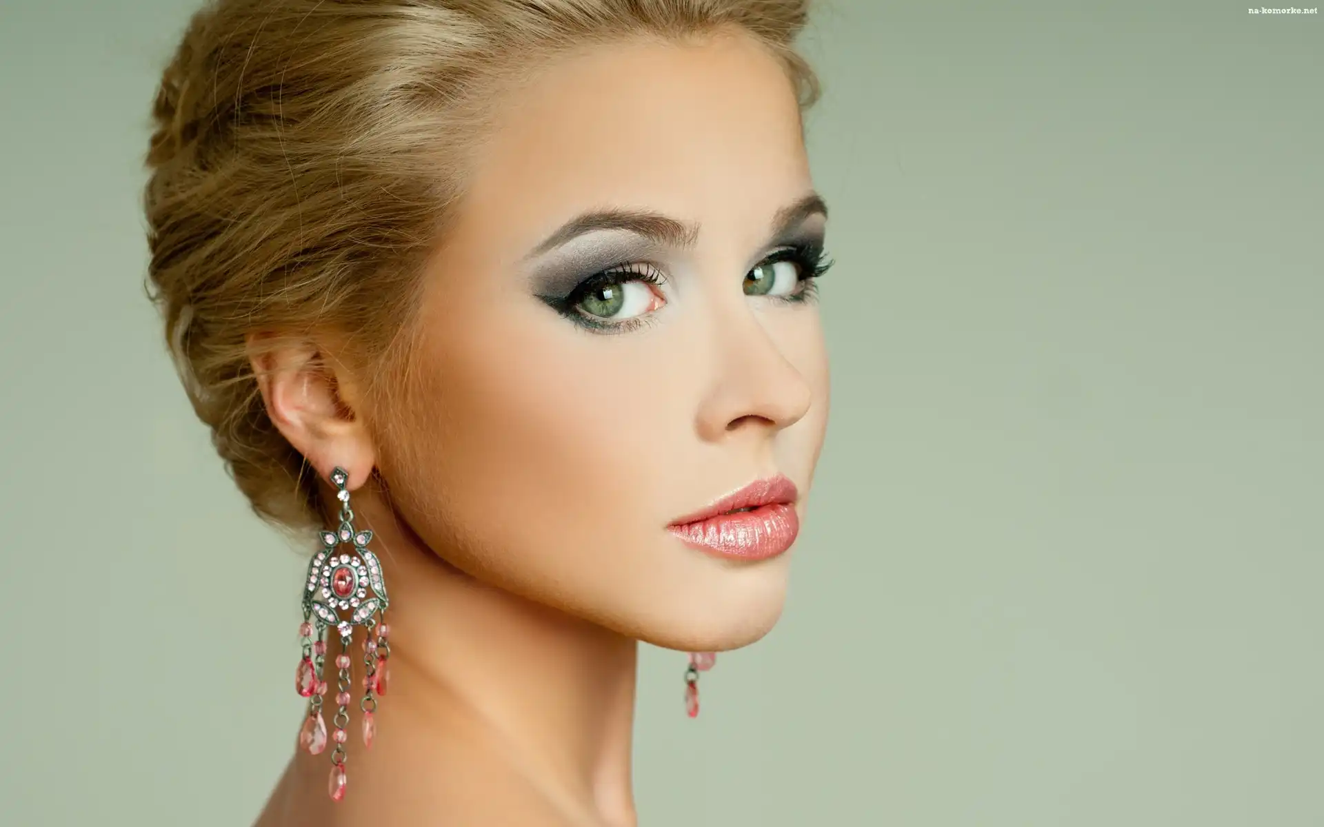 Kobieta, Makijaż, Kolczyki na Komórkę