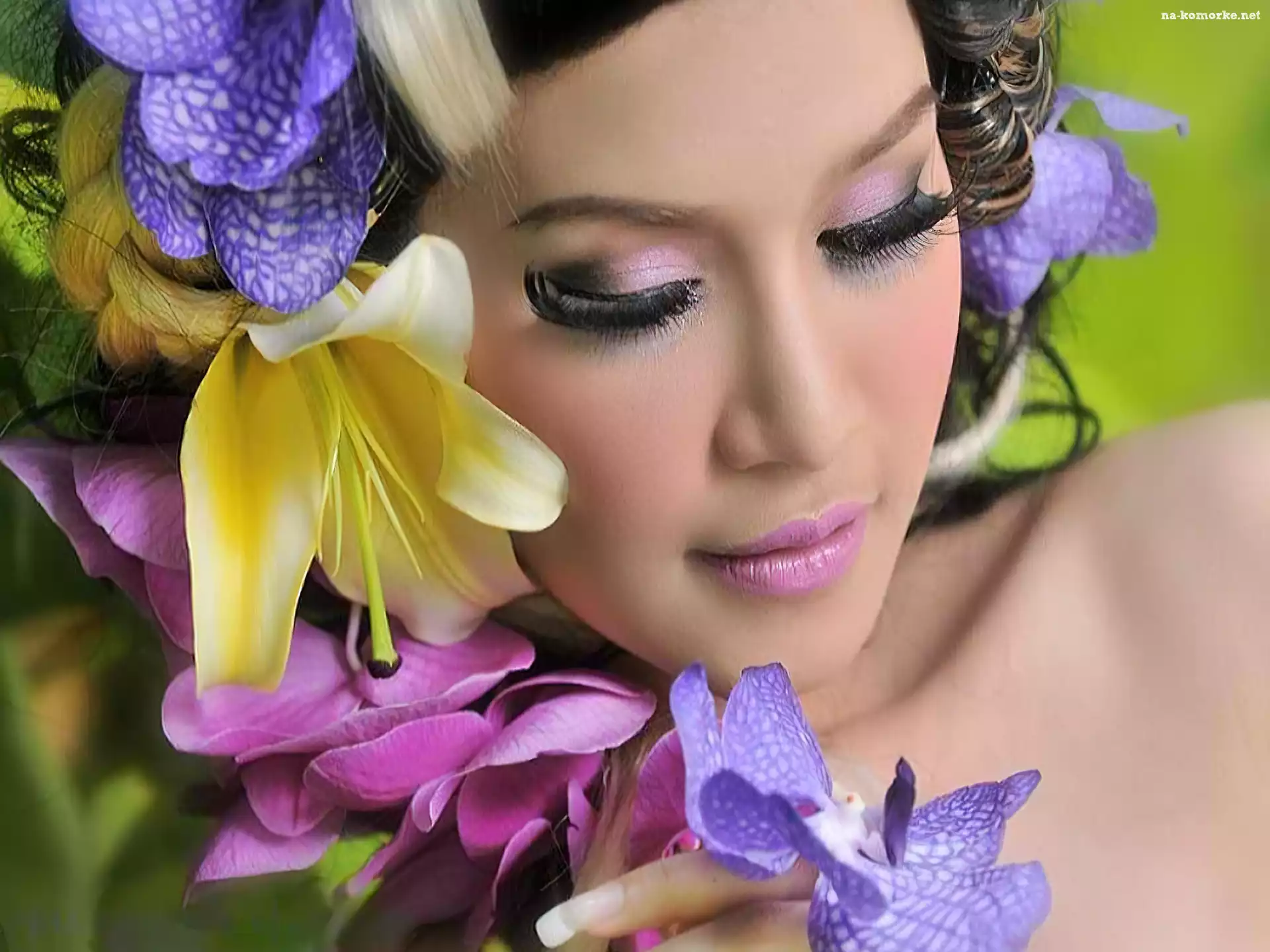 Kobieta, Makijaż, Kwiaty na Komórkę
