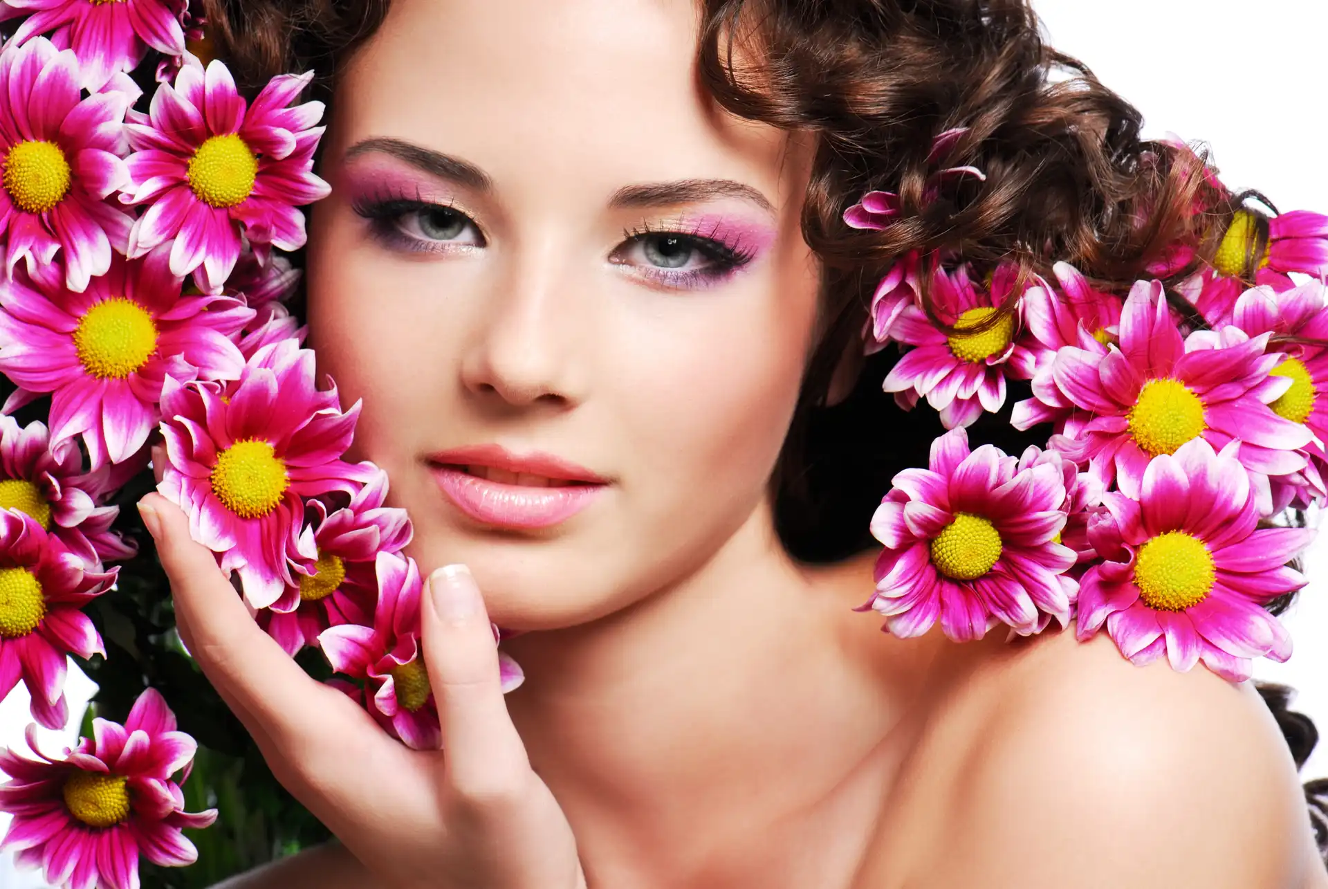 Kobieta, Makijaż, Kwiaty na Komórkę