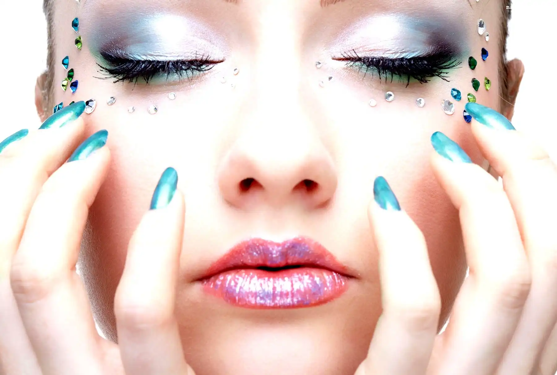 Kobieta, Makijaż, Palce na Komórkę