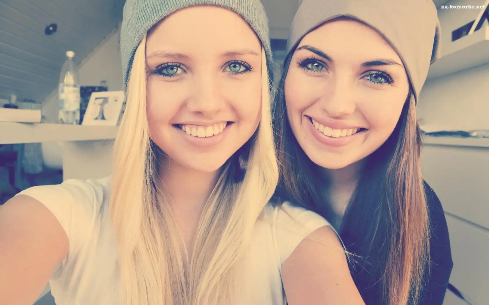 Makijaż, Uśmiechnięte, Dwie, Kobiety, Czapki na Komórkę
