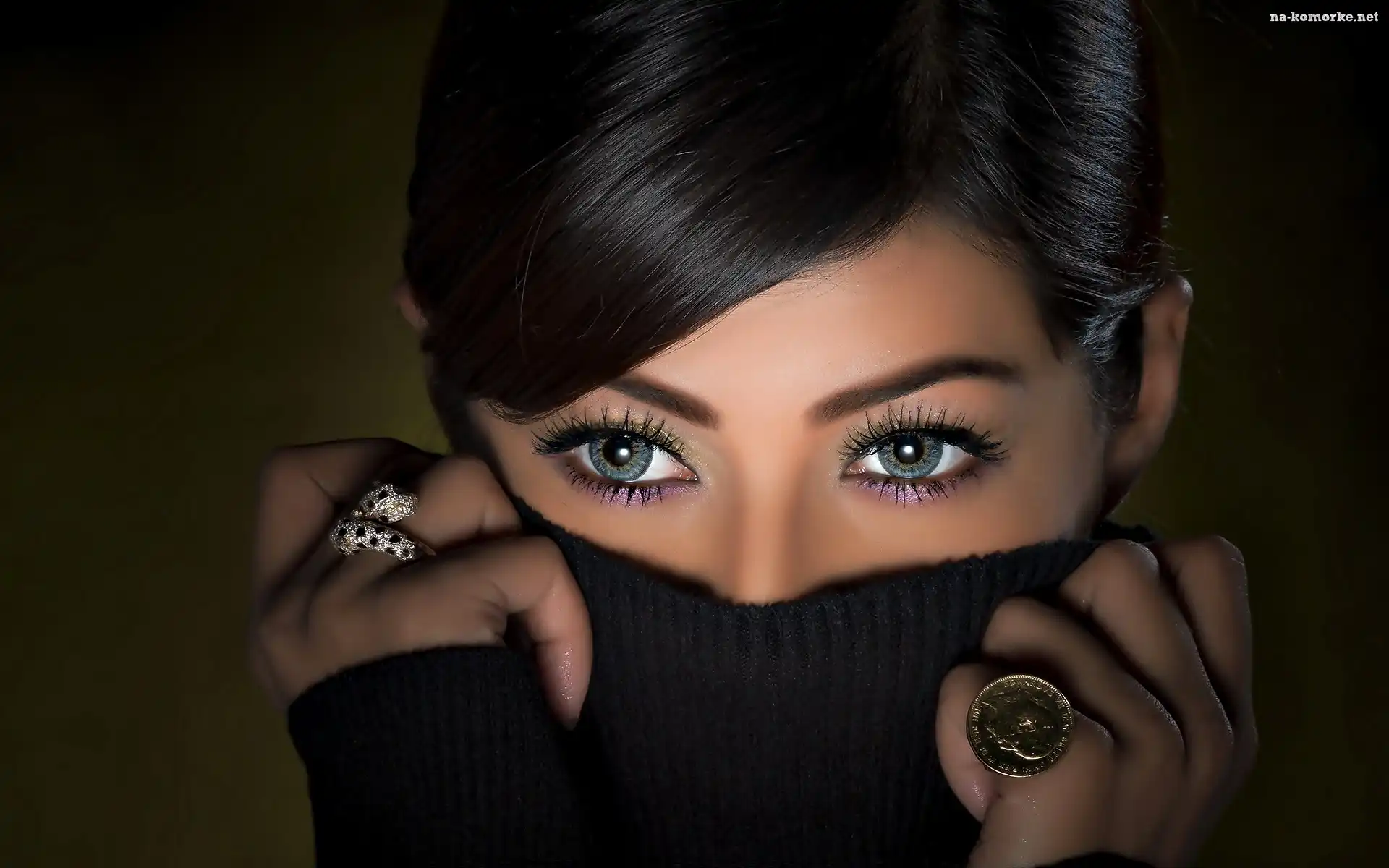 Makijaż, Zakryte, Kobieta, Oczy, Usta, Biżuteria na Komórkę