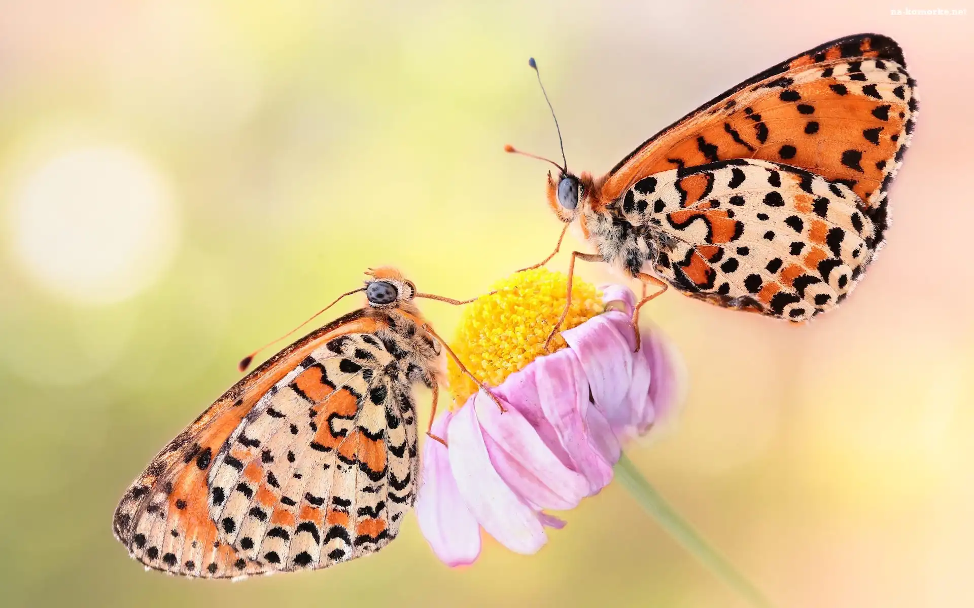 Makro, Dwa, Motyle, Przeplatki didyma, Kwiatek na Komórkę