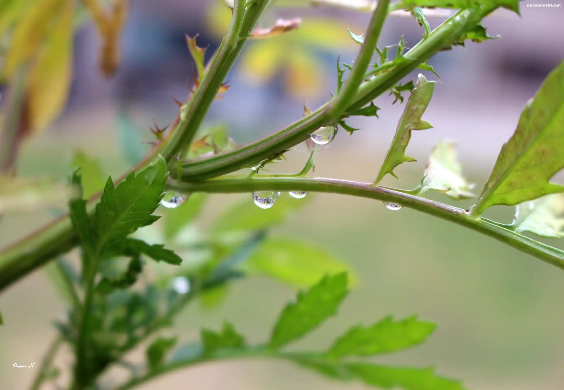 Makro, Krople, Rosy, Gałązka, Liście na Komórkę