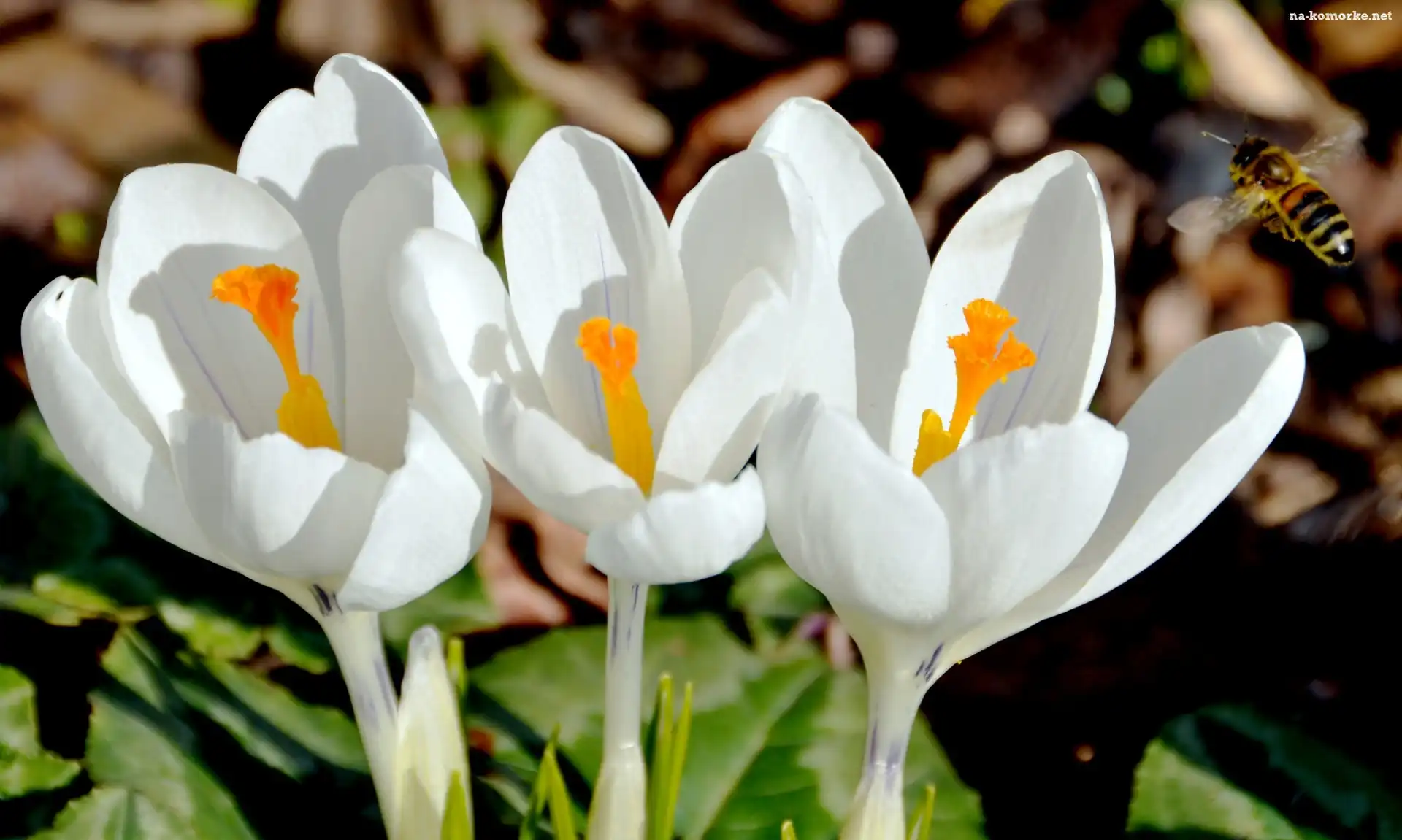 Makro, Trzy, Białe, Krokusy, Pszczoła na Komórkę