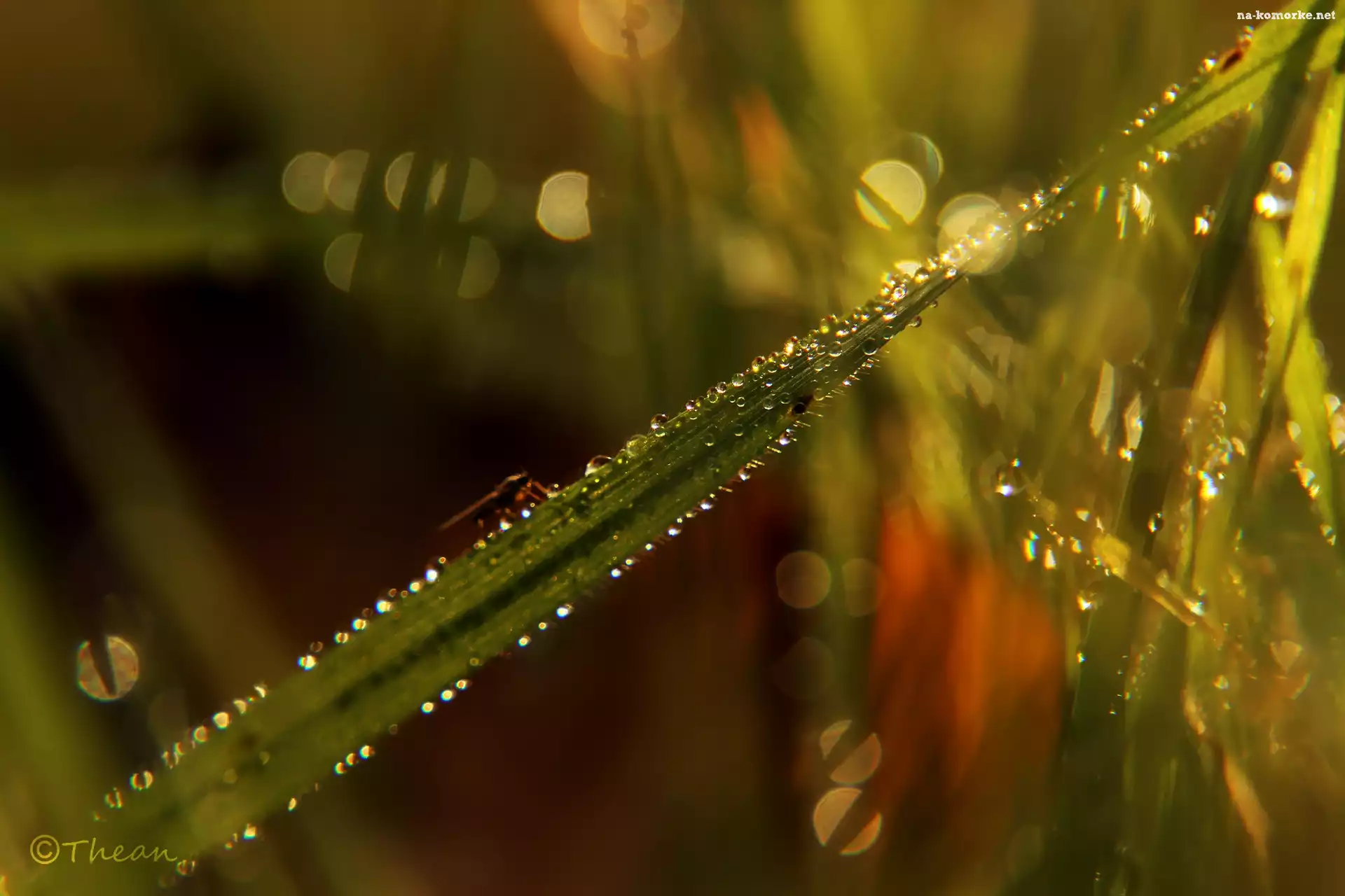 Makro, Trawa, Źdźbło, Krople, Rosy na Komórkę