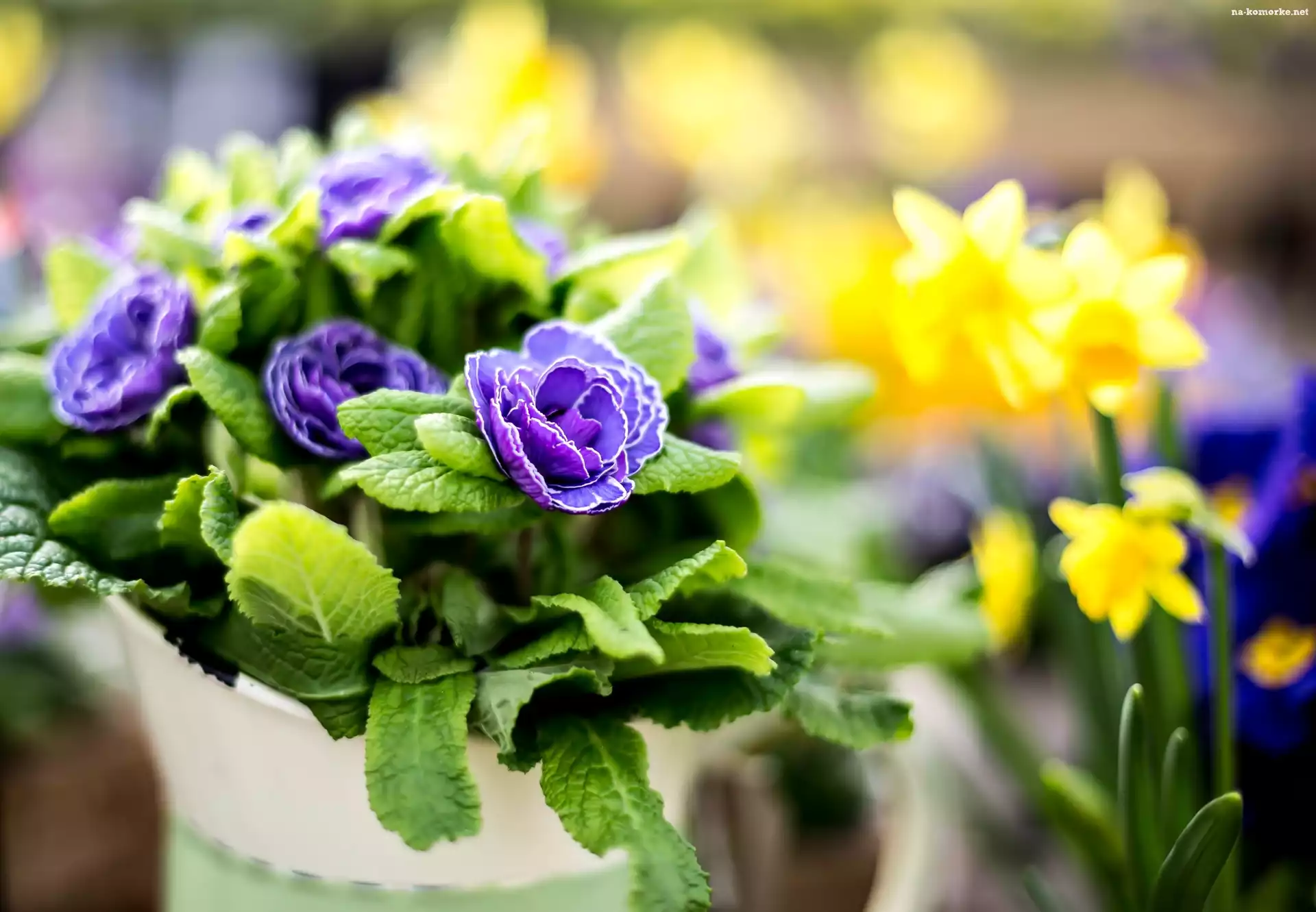 Makro, Prymule, Kwiaty, Żonkile na Komórkę