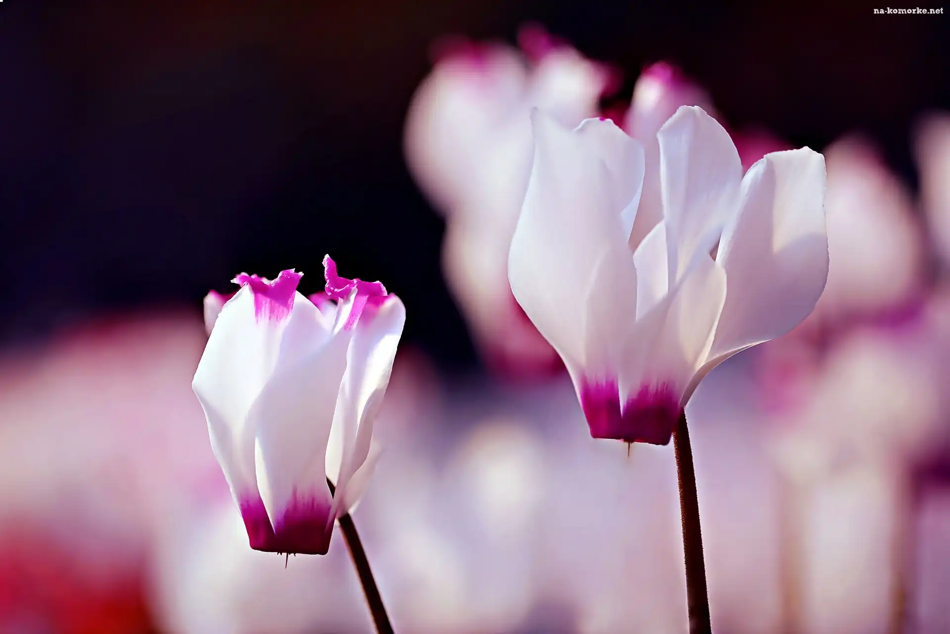 Makro, Biało, Różowe, Kwiaty, Cyklameny na Komórkę