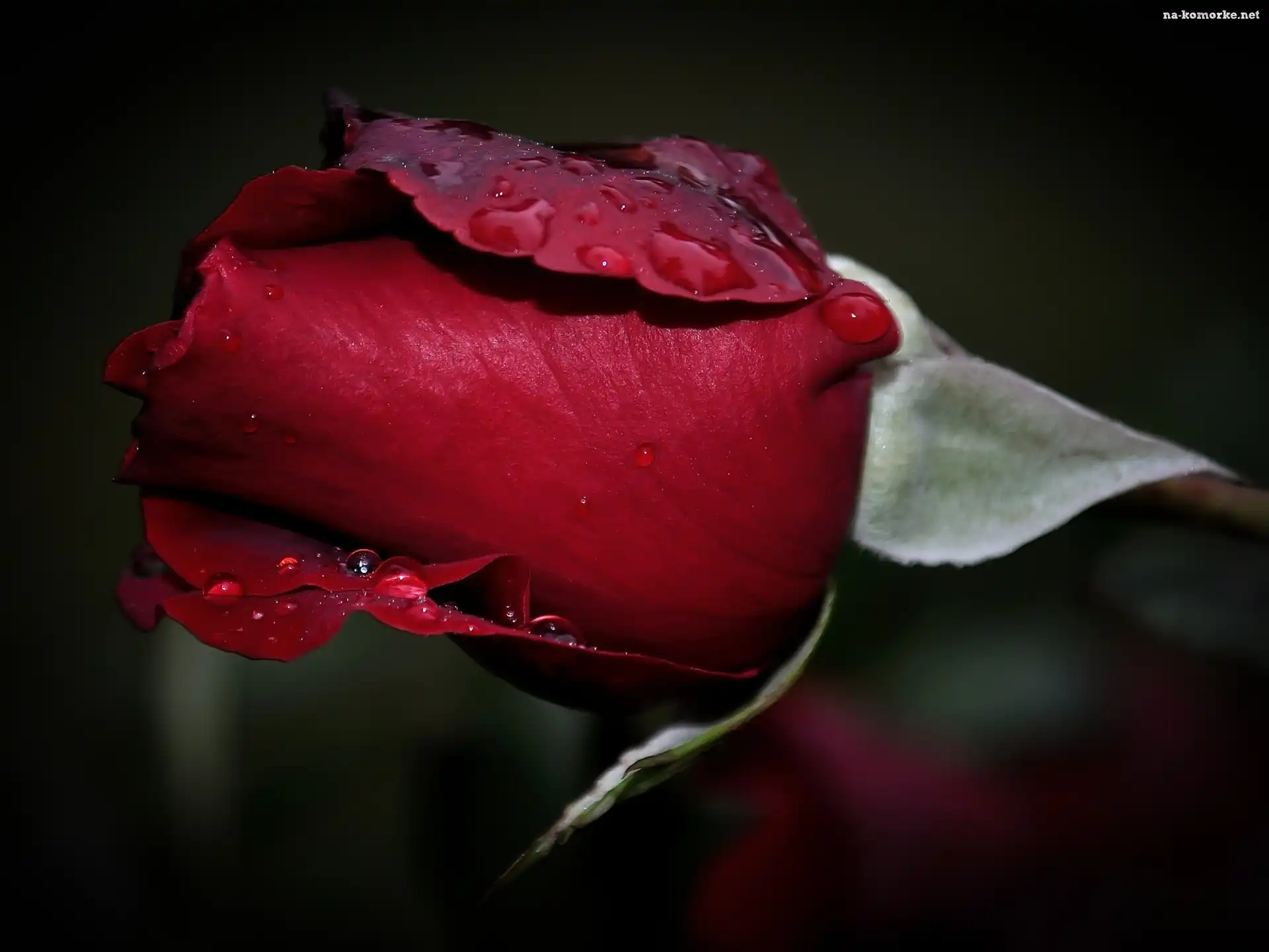 Makro, Pączek, Czerwonej, Róży, Krople na Komórkę