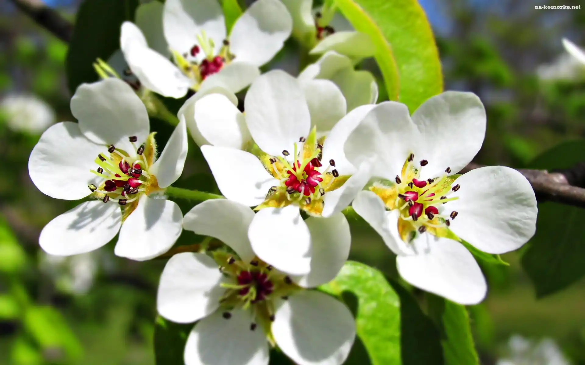 Makro, Grusza, Wiosna, Kwiaty na Komórkę