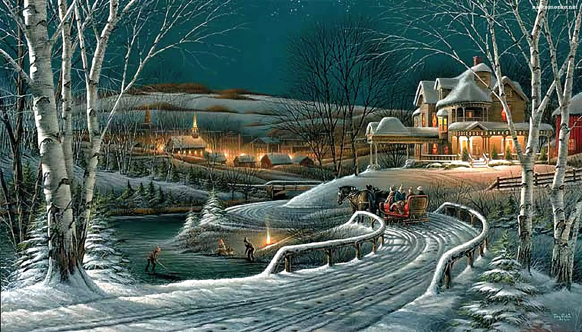 Malarstwo, Zimowy, Widoczek, Droga, Dom na Komórkę