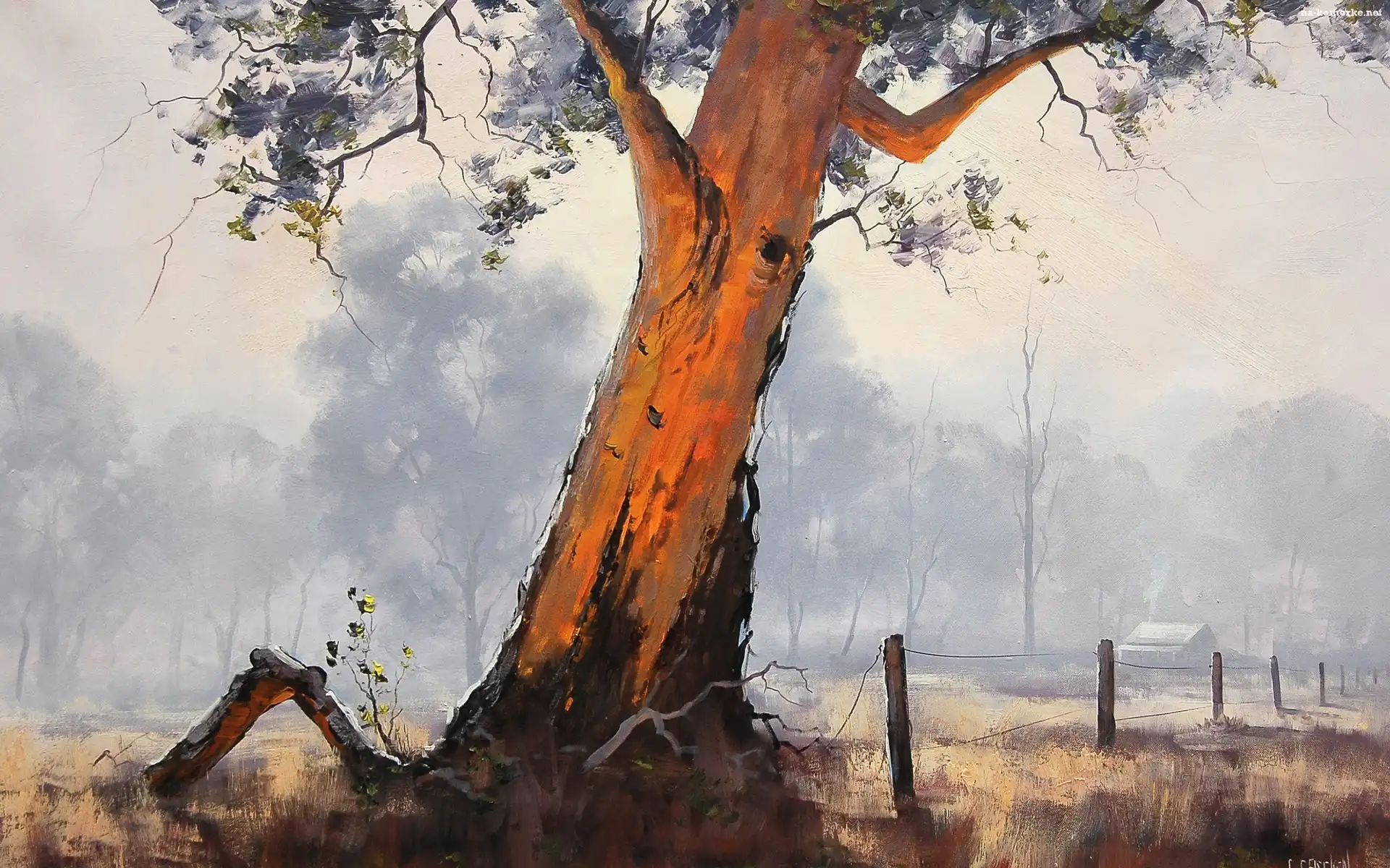 Malarstwo, Mgła, Drzewo, Korzenie na Komórkę