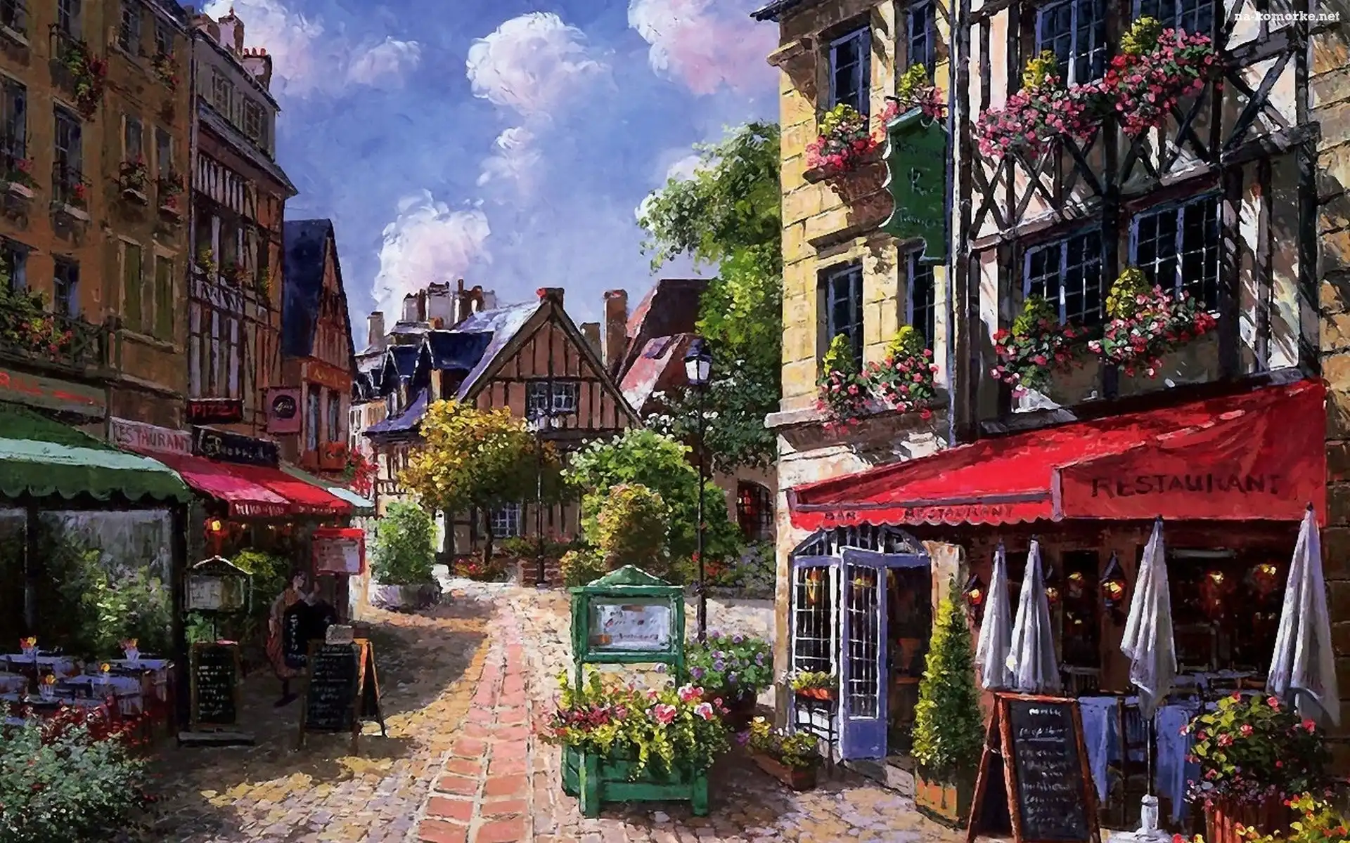 Malarstwo, Domy, Obraz, Ulica na Komórkę