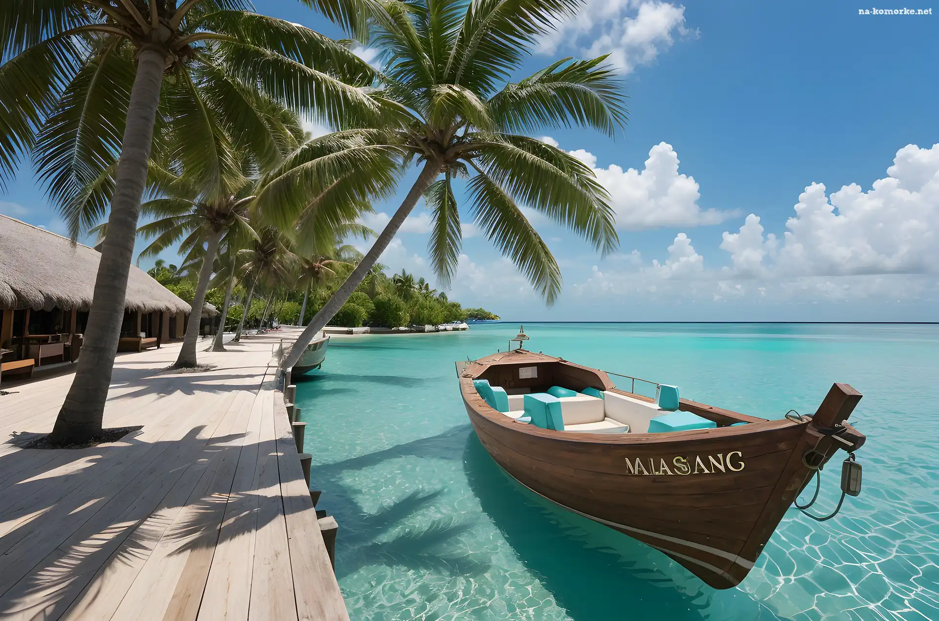 Domy, Łódka, Palmy, Malediwy, Podest, Morze na Komórkę