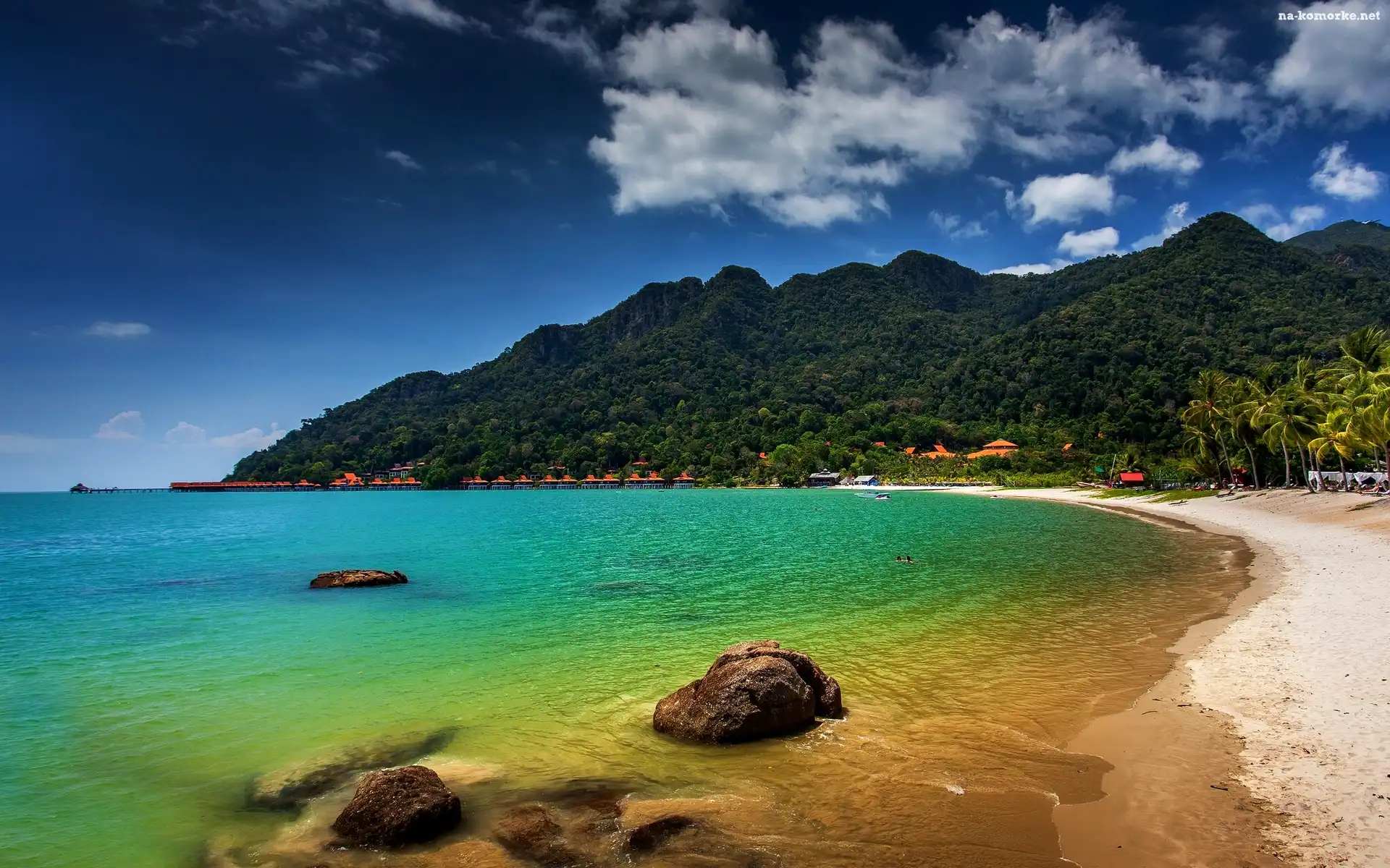 Plaża, Malezja, Langkawi, Wybrzeże, Morze Andamańskie, Góry na Komórkę