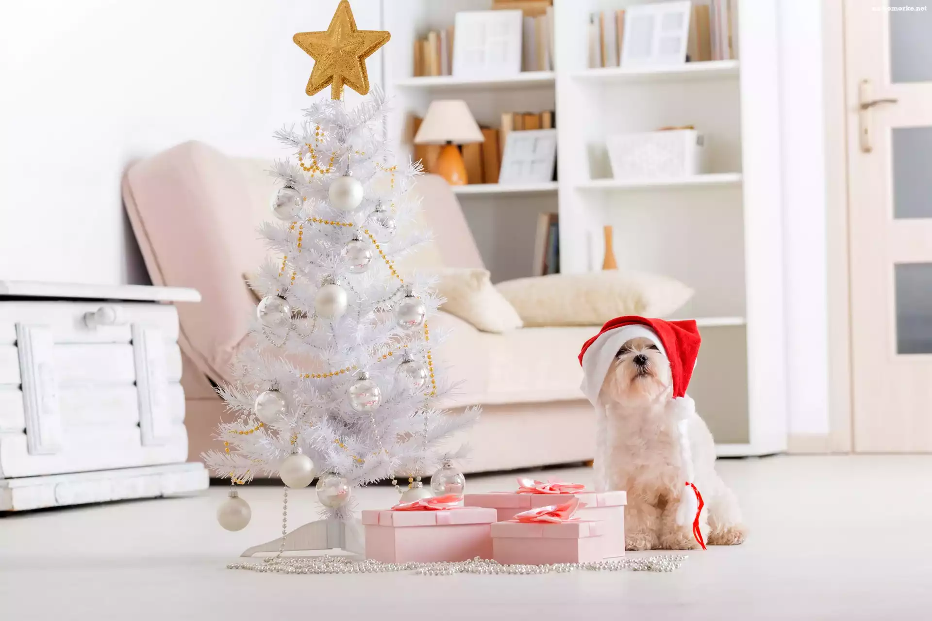 Boże Narodzenie, sanie mikołaja Boże Narodzenie, Drzewa Trzy, Suczki, Maltańczyki, Białe Boże Narodzenie, bombka Boże Narodzenie, szyszka Żółte, Bombki Boże Narodzenie, domek Boże Narodzenie, choineczka , prezenty Boże Narodzenie, szkieletor Boże Narodzenie, renifer Boże Narodzenie, mikołaj słodka, mordka, Maltańczyka Gałązki, Bombki, Czekoladki Boże Narodzenie, choinka